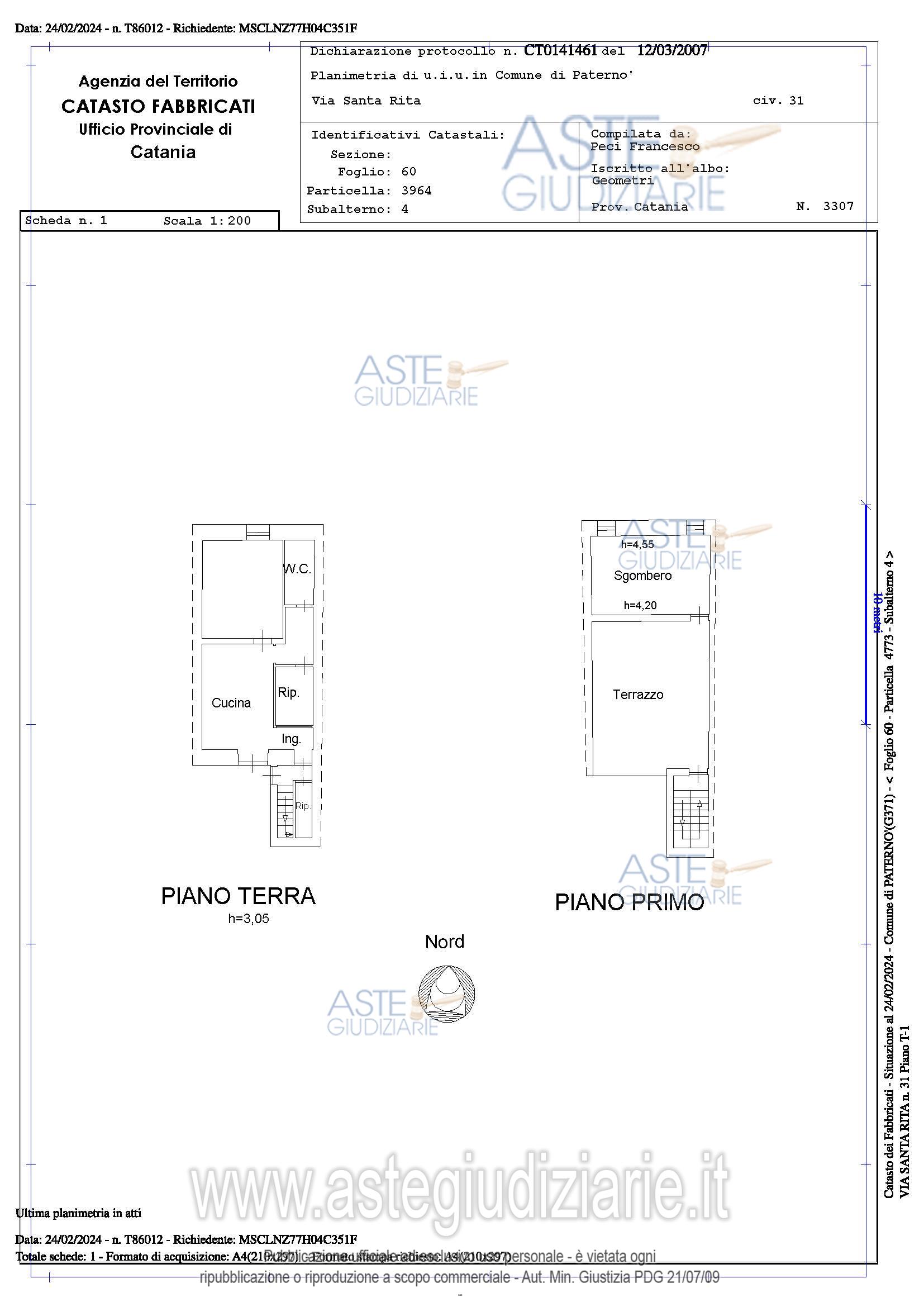Vendita all'asta Senza incanto, con gara telematica sincrona - LOTTO UNICO: LOTTO UNICO Unità immobiliare composta da un appartamento unifamiliare adibito a civile abitazione ubicato al Piano Terra e da tre locali di sgombero al piano primo soprastanti l’appartamento; il lotto fa parte di un complesso edilizio a corte di maggiore consistenza sito nel Comune di Paternò, via Santa Rita civico 31. Si accede alla unità immobiliare oggetto di esecuzione da una corte comune, accessibile da un cancello posto al civico 31 di via Santa Rita. Prezzo base € 42.800,00 (offerta minima € 31.500,00). Data vendita 26/05/2026 ore 11:00. Professionista delegato alla vendita Avv. Patrizia Stella Signorello - Email "stellasignorello@libero.it"; Tel. 095388875. Custode Giudiziario Avv. Patrizia Stella Signorello - Email "stellasignorello@libero.it"; Tel. 095388875. Rif. Tribunale di Catania - Esecuzione immobiliare post legge 80 n. 32/2022