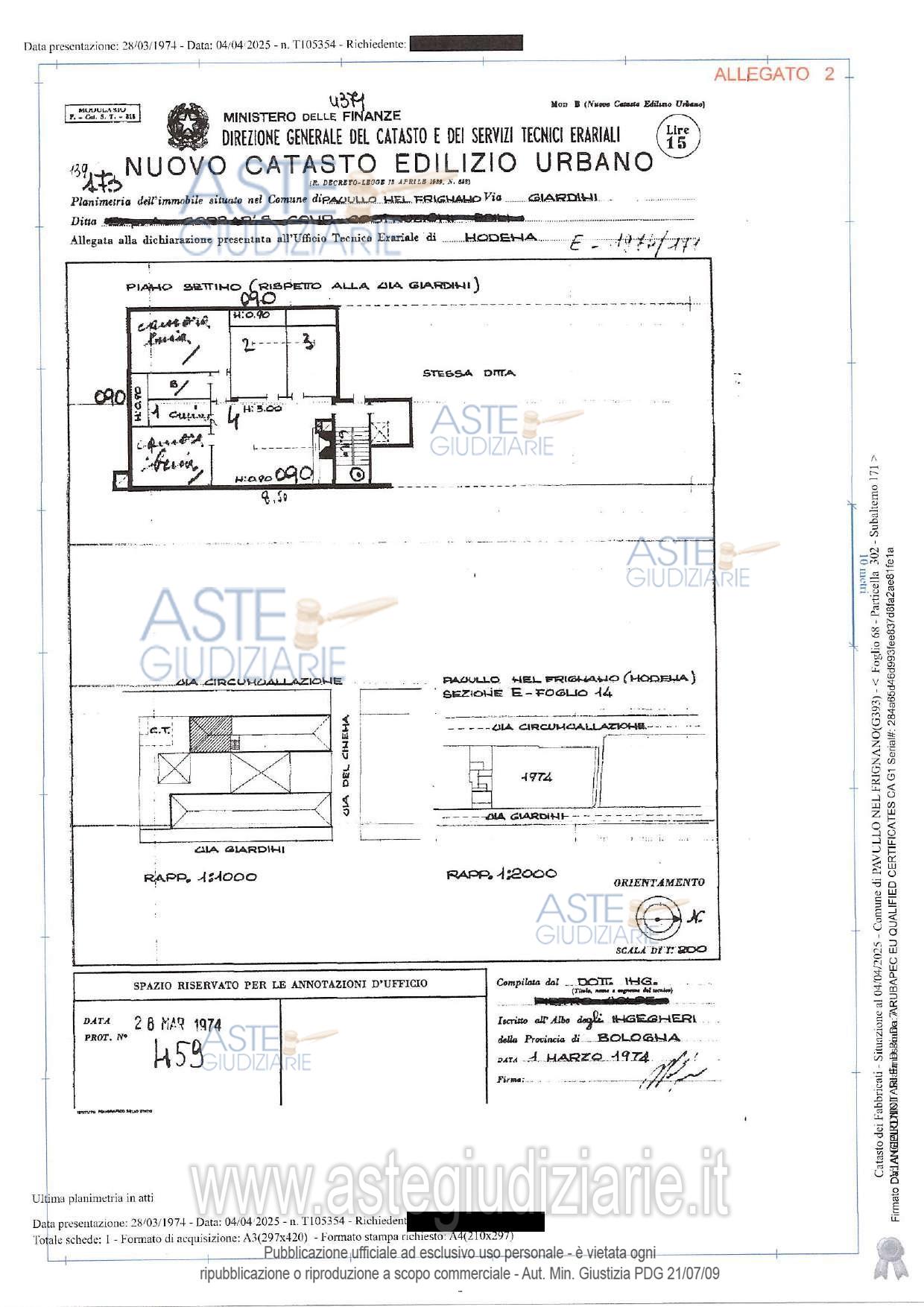 Vendita all'asta Senza incanto, con gara telematica asincrona - LOTTO UNICO: Appartamento sito al piano settimo del condominio “Domus Giardini” con accesso da Via Giardini nr. 200, scala D, composto da un ingresso soggiorno, due camere una cucina con annessa lavanderia (?) un locale igienico, una stanza priva di finestre, illuminata solo da un piccolo lucernaio. Completano il bene tre piccoli ripostigli con altezza media di cm. 105 ( min. cm 85 max cm. 125).L'alloggio si sviluppa all'interno di un sottotetto. Prezzo base € 26.625,00 (offerta minima € 19.968,75). Data inizio operazioni di vendita: 02/04/2026 ore 12:30. Professionista delegato alla vendita Avv. Leonardo Giardomentrone - Email "avv.leonardogiardomentrone@gmail.com"; Cell. 3393674358. Custode Giudiziario Alex Manelli - Email "visiteimmobili@ivgmodena.it"; Tel. 059847301. Rif. Tribunale di Modena - Espropriazione immobiliare (cartabia) n. 84/2024