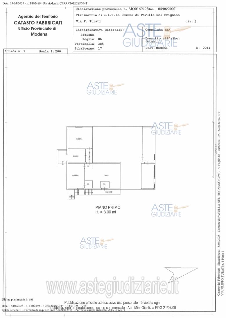 Custode Giudiziario: Alex Manelli - Email "visiteimmobili@ivgmodena.it"; Tel. 059/847301.