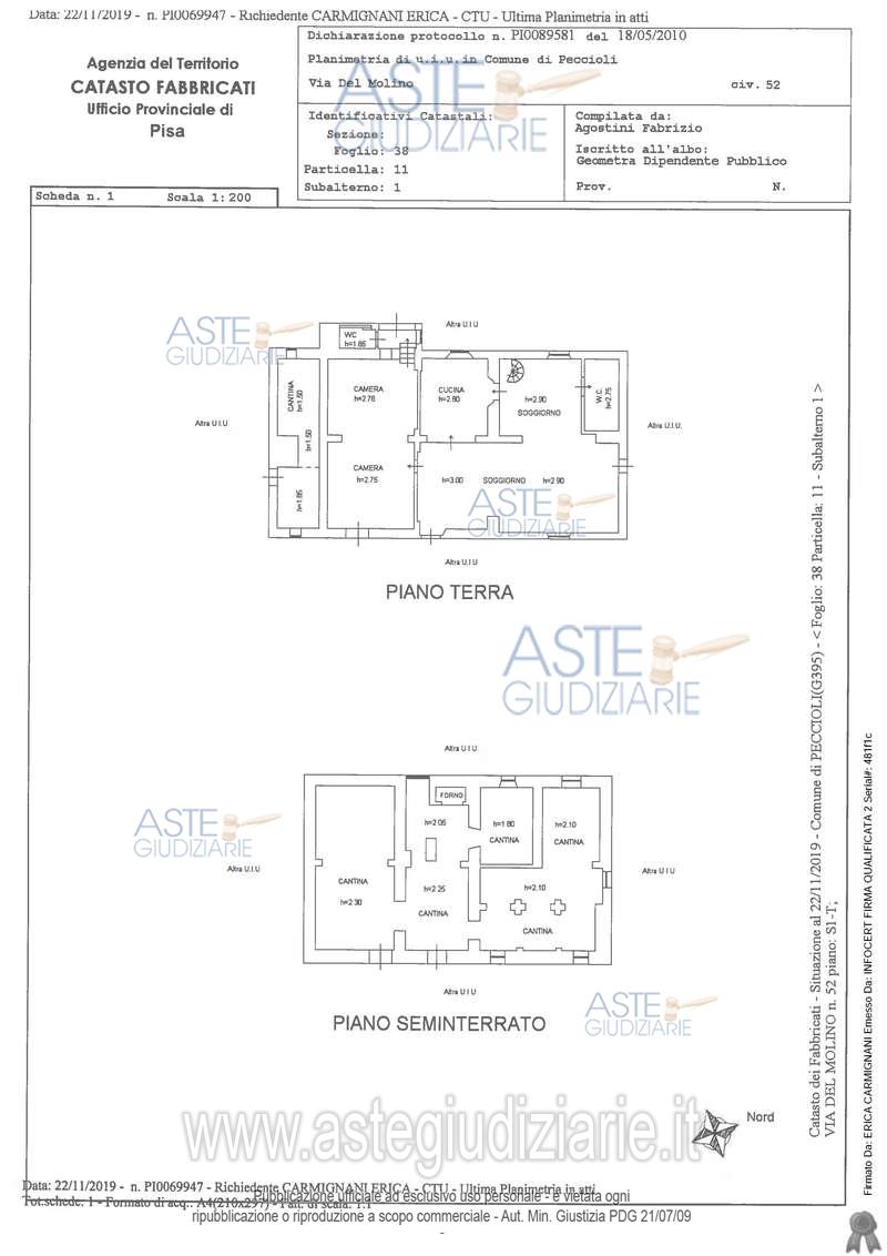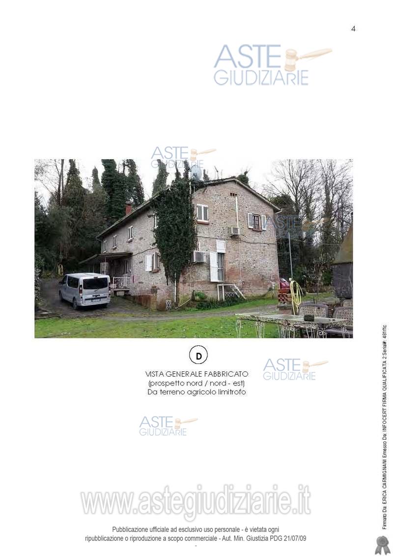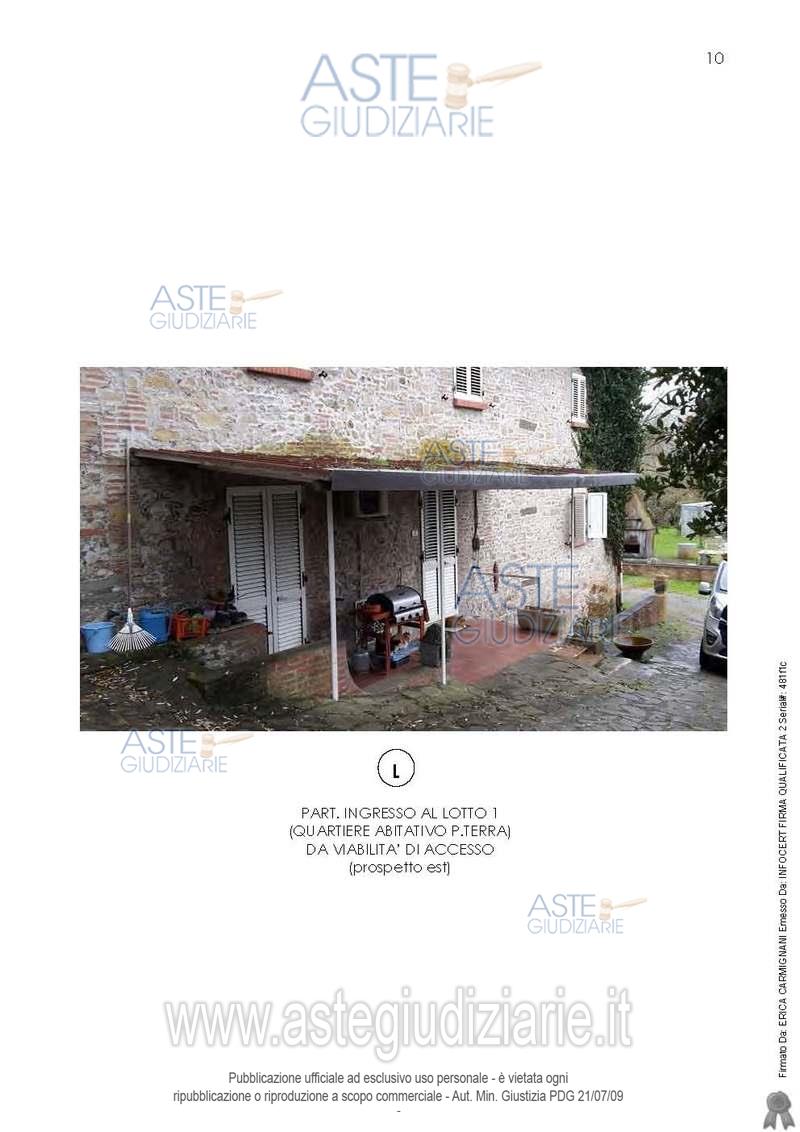 Vendita all'asta Senza incanto, con gara telematica asincrona - LOTTO 1: In Peccioli, località Le Piagge, via del Molino numero civico 54, piena proprietà dell’intero di porzione abitativa, posta al piano terra di un più ampio fabbricato rurale, con accesso diretto dalla pubblica via (ex strada vicinale delle Piagge) attraverso modestissima striscia di cortile esclusivo (prospetto sud-est). Prezzo base € 75.000,00 (offerta minima € 56.250,00). Data inizio operazioni di vendita: 20/05/2026 ore 14:00. Giudice Dott. Marco Zinna. Professionista delegato alla vendita Not. Vittorio Di Lella. Custode Giudiziario Dott. Cosimo Erriquez - Email "prenotazionipisa@astagiudiziaria.com". Rif. Tribunale di Pisa - Esecuzione immobiliare post legge 80 n. 195/2019