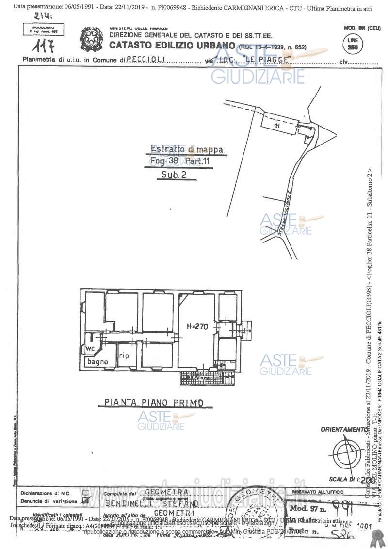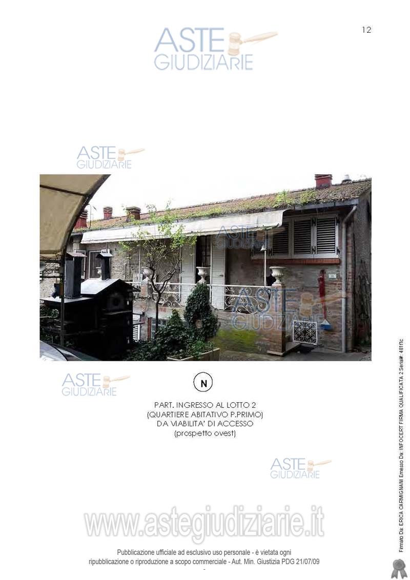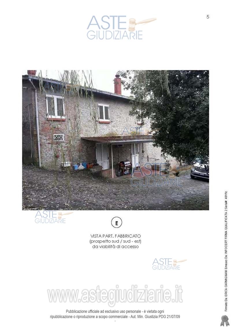 Vendita all'asta Senza incanto, con gara telematica asincrona - LOTTO 2: In Peccioli, località Le Piagge, via del Molino numero civico 54, piena proprietà dell’intero di porzione abitativa, posta al piano primo di un più ampio fabbricato rurale, con accesso diretto dalla pubblica via (ex strada vicinale delle Piagge) mediante cortile esterno esclusivo (prospetto ovest). Prezzo base € 58.000,00 (offerta minima € 43.500,00). Data inizio operazioni di vendita: 20/05/2026 ore 14:00. Giudice Dott. Marco Zinna. Professionista delegato alla vendita Not. Vittorio Di Lella. Custode Giudiziario Dott. Cosimo Erriquez - Email "prenotazionipisa@astagiudiziaria.com". Rif. Tribunale di Pisa - Esecuzione immobiliare post legge 80 n. 195/2019
