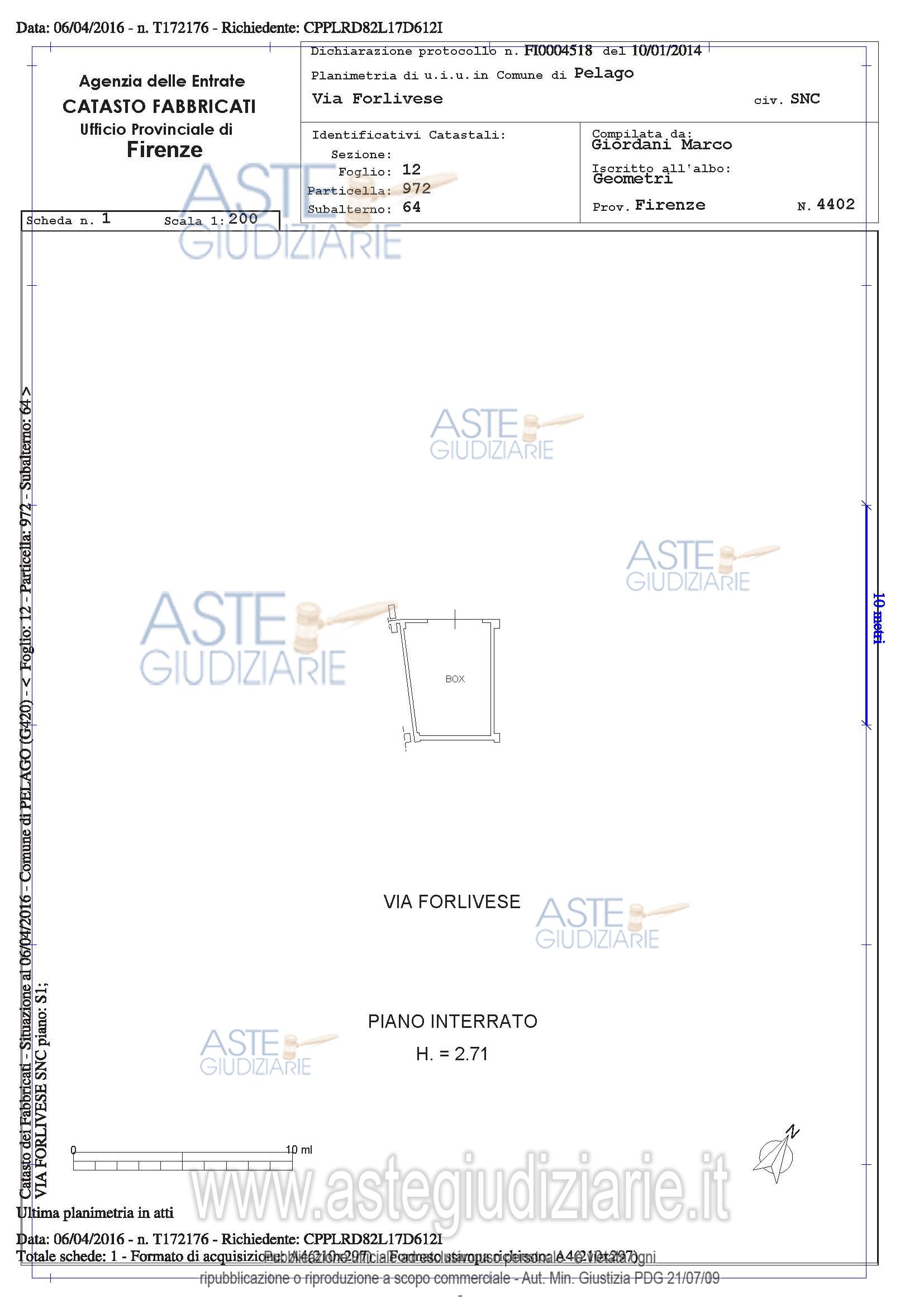 Al Catasto Fabbricati gli immobili risultano censiti nel foglio 12, particella 972, subalterni 33 (l’appartamento), e 64 (il box auto).
