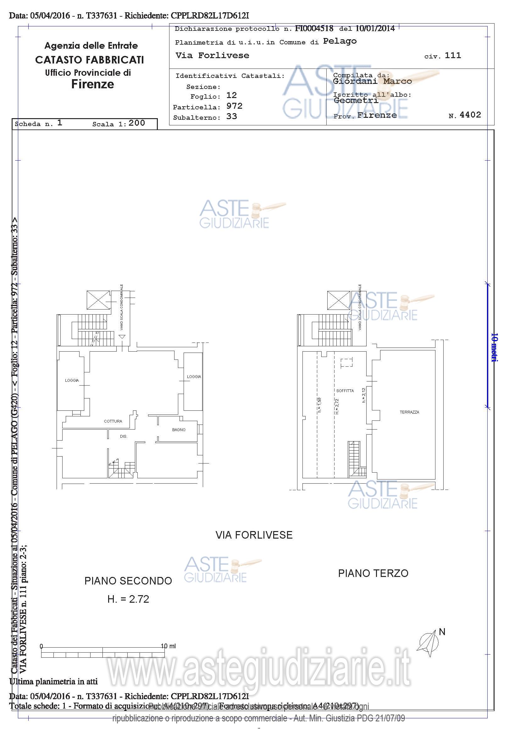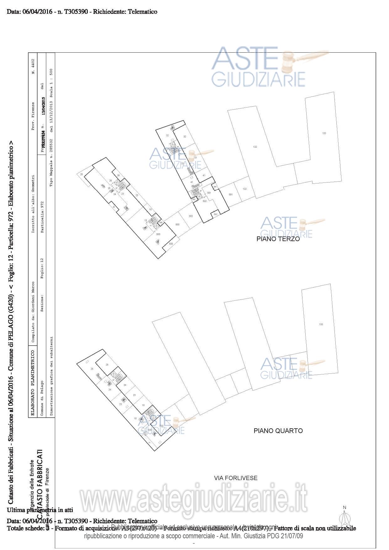 Vendita all'asta Senza incanto - LOTTO UNICO: Unità immobiliare per civile abitazione al piano secondo del civico 111 della Via Forlivese - Pelago, composto da soggiorno con angolo cottura, disimpegno, bagno, due camere da letto oltre a due logge e soffitta dotata di bagno e terrazza, con annesso quale pertinenza al piano interrato un box auto.