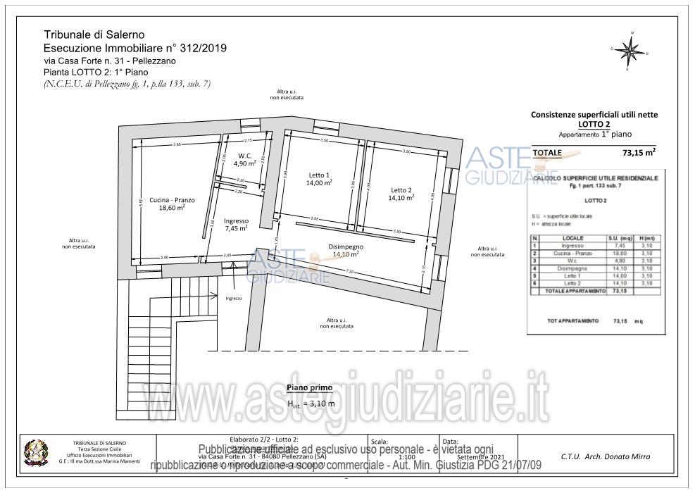 Vendita all'asta Senza incanto, con gara telematica asincrona - LOTTO 2: Appartamento per civile abitazione su un livello (Piano primo) ubicato in via Casa Forte n. 31 del comune di Pellezzano (SA). Prezzo base € 55.440,00 (offerta minima € 41.580,00). Data inizio operazioni di vendita: 12/03/2026 ore 16:00. Professionista delegato alla vendita Avv. Gerardo Belcore - Email "gerardobelcore@gmail.com". Custode Giudiziario Avv. Gerardo Belcore - Email "gerardobelcore@gmail.com"; Cell. 3204552534; Tel. 0813142853. Rif. Tribunale di Salerno - Esecuzione immobiliare post legge 80 n. 312/2019