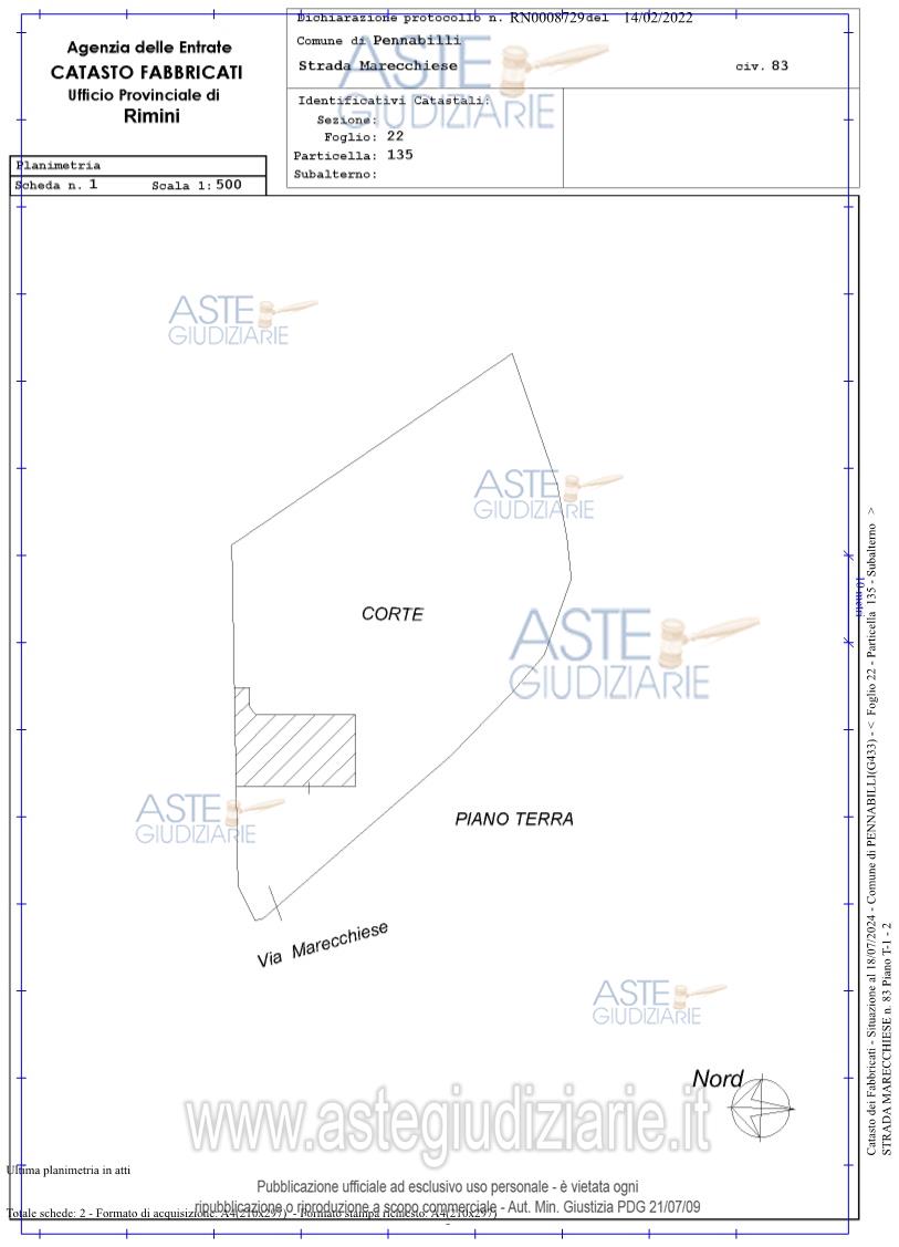 Vendita all'asta Senza incanto, con gara telematica asincrona - LOTTO UNICO: Piena proprietà di fabbricato autonomo ad uso civile abitazione e appezzamento contiguo a corte. Prezzo base € 73.125,00 (offerta minima € 54.843,75). Data inizio operazioni di vendita: 24/03/2026 ore 09:30. Giudice Letizia Bocchini. Professionista delegato alla vendita Avv. Bianca Festa - Email "bianca@studiolegalefesta.it"; Cell. 3246257491; Tel. 054121575. Custode Giudiziario Avv. Roberta Cuffaro - Email "roberta@studiolegalefesta.it"; Cell. 3351086232; Tel. 054121575. Rif. Tribunale di Rimini - Esecuzione immobiliare post legge 80 n. 132/2020