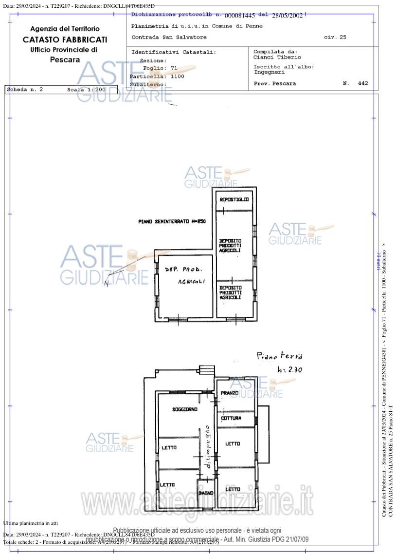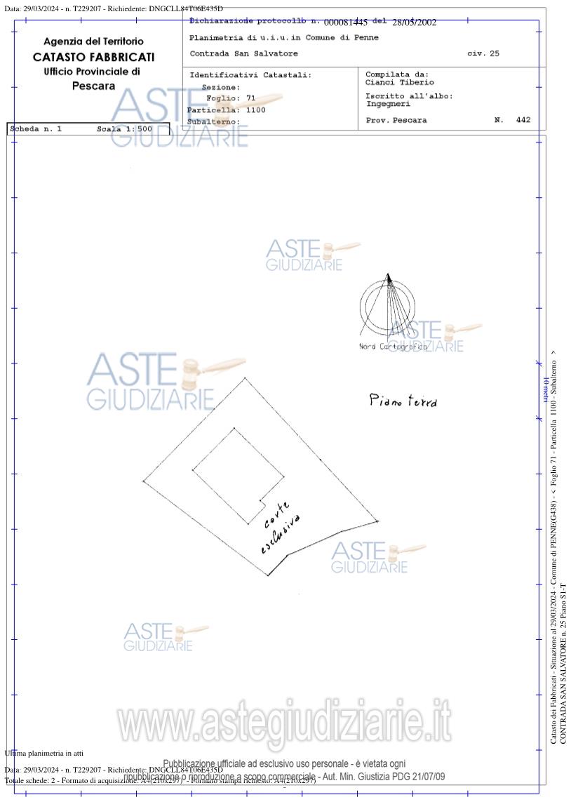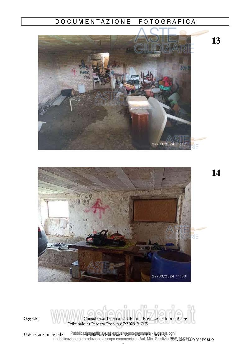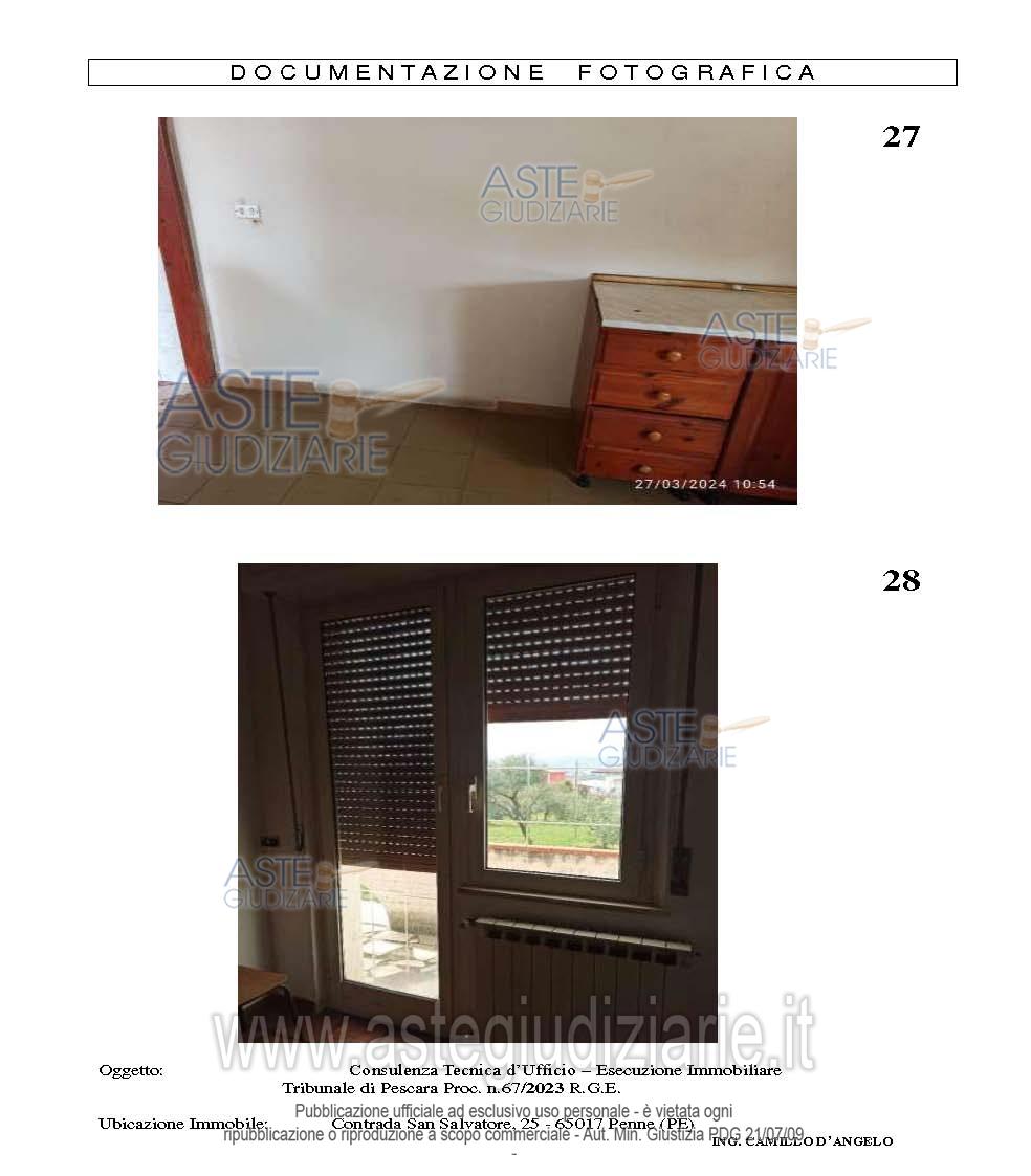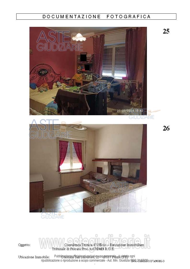 Vendita all'asta Senza incanto, con gara telematica asincrona - LOTTO UNICO: in Penne (PE), alla contrada San Salvatore n.25, intera piena proprietà di fabbricato civile (edificio terra-cielo) isolato, composto da piano seminterrato e terra, comprensivo di corte privata. Prezzo base € 63.917,10 (offerta minima € 47.937,83). Data inizio operazioni di vendita: 31/03/2026 ore 12:30. Giudice Dott. Daniela Angelozzi. Professionista delegato alla vendita Not. Krizia Sulpizio. Custode Giudiziario Not. Krizia Sulpizio - Email "avvantonello@derosastudiolegale.com". Rif. Tribunale di Pescara - Espropriazione immobiliare (cartabia) n. 67/2023