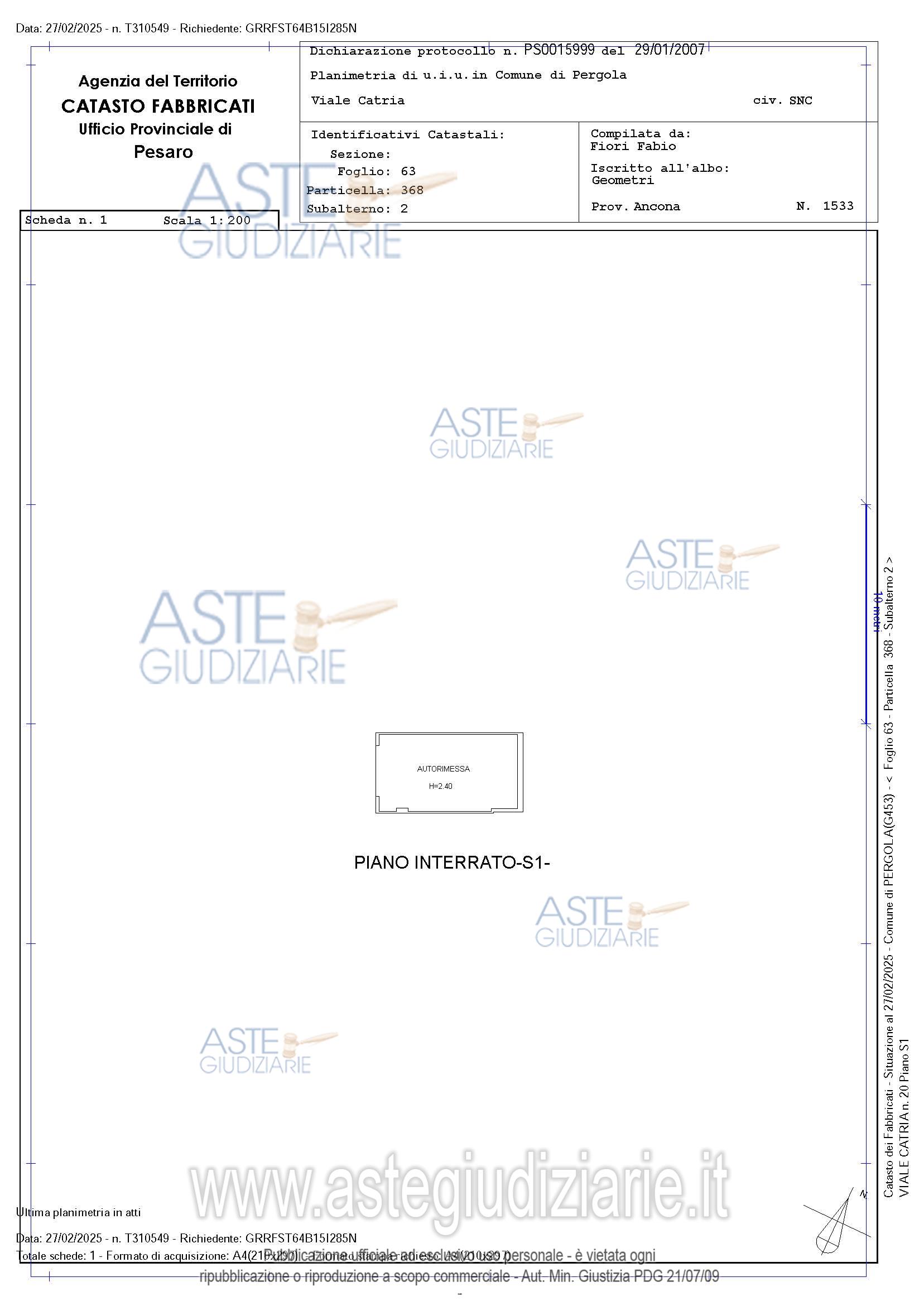 Vendita in attesa dell'emissione del nuovo bando d'asta. LOTTO UNICO: Intera Proprietà su Appartamento della superficie commerciale di 126,65 mq posto al piano terra con scopertoesclusivo oltre a pertinente garage al piano primo sottostrada. Ultimo prezzo base € 84.000,00 (offerta minima € 63.000,00). Giudice Dott. Lorenzo Pini. Professionista delegato alla vendita Dott. Massimo Lanci - Email "m.lanci@lazzarieassociati.it". Custode Giudiziario Avv. Laura Radicchi - Email "lauraradicchi@pec.ordineavvocatipesaro.it". Rif. Tribunale di Pesaro - Espropriazione immobiliare (cartabia) n. 5/2025