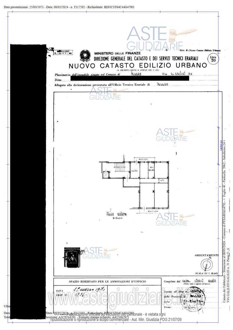 Vendita all'asta Senza incanto, con gara telematica sincrona mista - LOTTO 7: Intera Proprietà su: appartamento al piano quinto sito in Comune di Pesaro PU) Via Galileo Galilei n. 31, quartiere Montegranaro, oltre alla comproprietà comproprietà pro-quota sulle parti del fabbricato che sono comuni per legge, destinazione azione e titolo, ove presenti. Prezzo base € 110.457,27 (offerta minima € 82.842,95). Data vendita 07/05/2026 ore 10:00. Giudice Dott. Lorenzo Pini. Professionista delegato alla vendita Dott. Athos Lazzari - Tel. 0721 25558; 0721 404. Custode Giudiziario Marche Servizi Giudiziari S.R.L. - Email "info@msg.srl"; Tel. 0733522205. Rif. Tribunale di Pesaro - Esecuzione immobiliare n. 52/2023