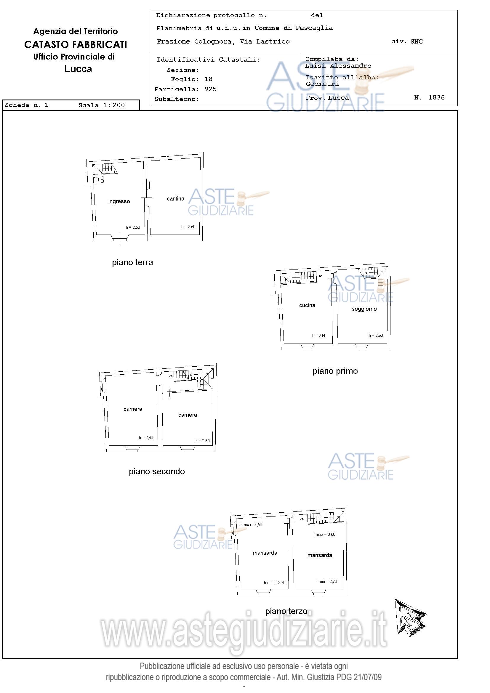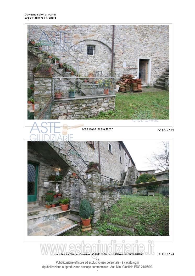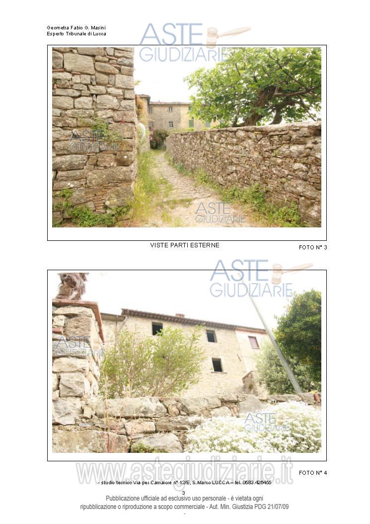 Vendita all'asta Senza incanto, con gara telematica sincrona mista - LOTTO 1: Lotto così composto:A) civile abitazione in centro storico su più livelli a PESCAGLIA via Lastrico snc,frazione Colognora, quartiere centro storico Colognora, della superficiecommerciale di 213,. Prezzo base € 25.495,00 (offerta minima € 19.121,25). Data vendita 24/04/2026 ore 09:00. Giudice Giulia Simoni. Professionista delegato alla vendita Dott. Donato Bellomo. Custode Giudiziario Ivg Di Lucca - Email "custodieivg@gmail.com"; Tel. 0583418555. Rif. Tribunale di Lucca - Esecuzione immobiliare post legge 80 n. 228/2021