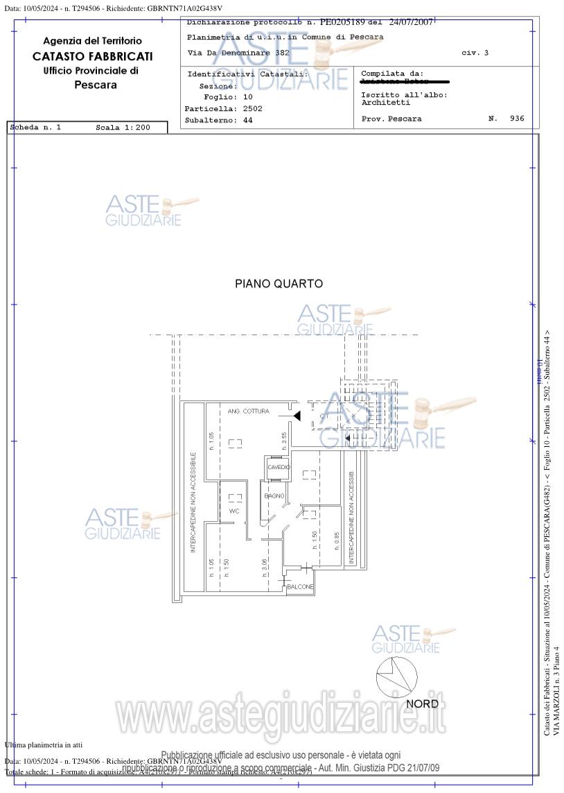 Vendita all'asta Senza incanto, con gara telematica asincrona - LOTTO UNICO: Appartamento che si sviluppa su 2 piani ubicati al piano terzo e quarto di un edificio di maggiore consistenza e un garage pertinenziale al piano terra. Prezzo base € 190.755,00 (offerta minima € 143.066,25). Data inizio operazioni di vendita: 13/01/2026 ore 12:00. Giudice Dott. Daniela Angelozzi. Professionista delegato alla vendita Avv. Agostino Barbati. Custode Giudiziario Avv. Agostino Barbati - Email "studiobarbatitarquini@gmail.com"; Cell. 3384960320. Rif. Tribunale di Pescara - Espropriazione immobiliare (cartabia) n. 175/2023
