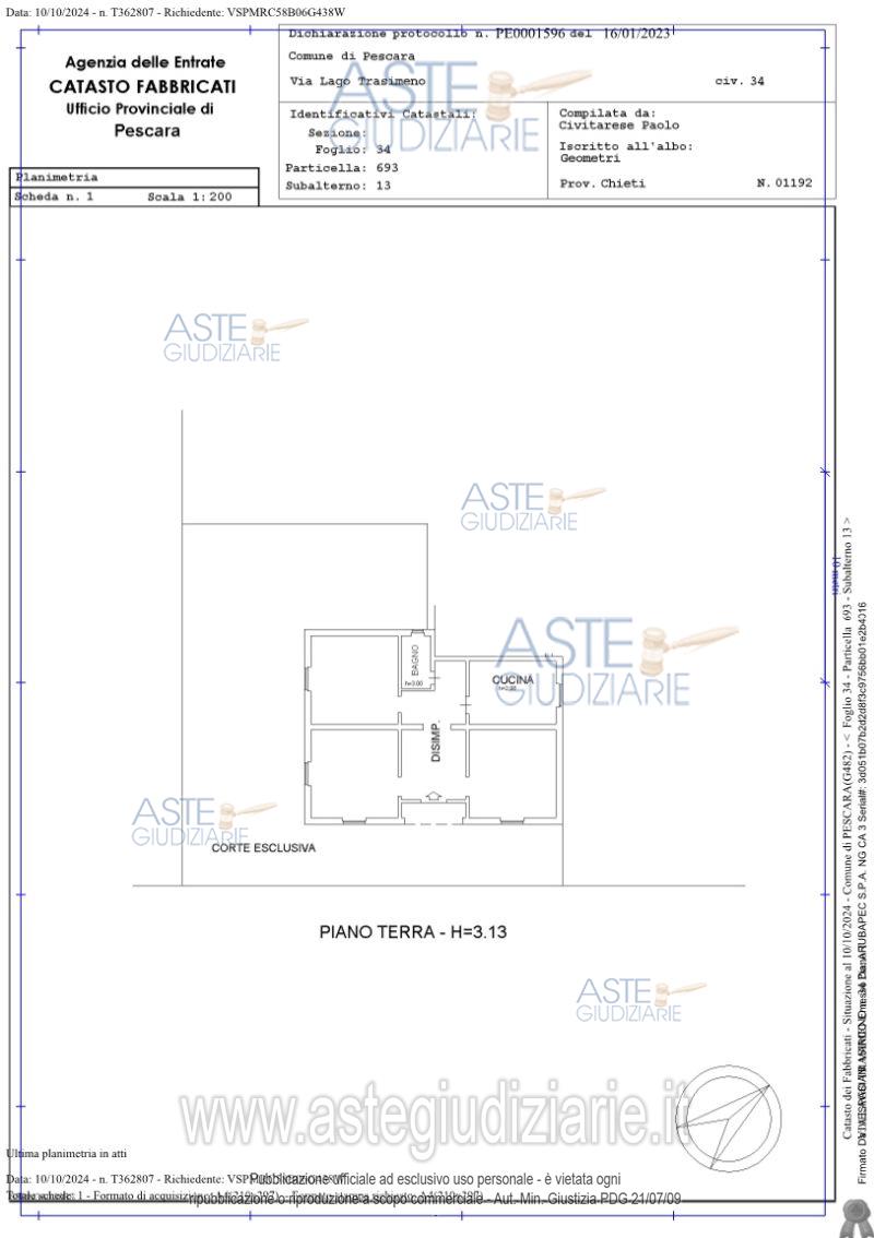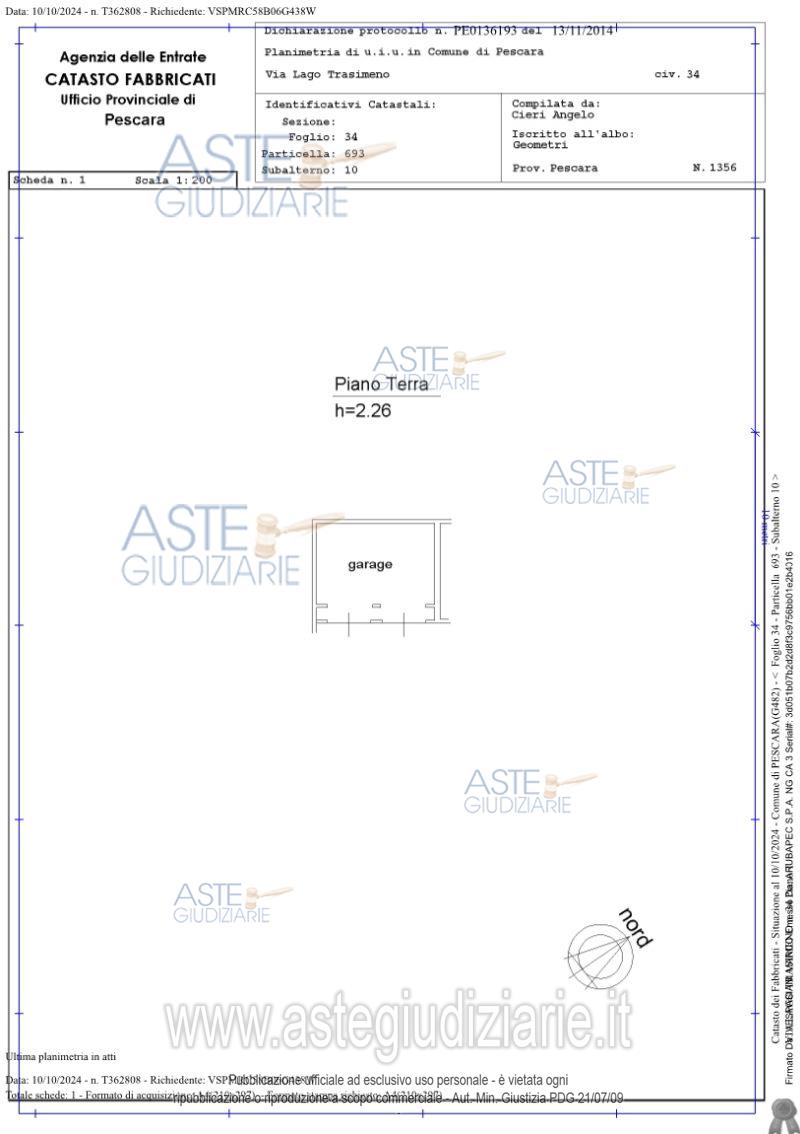 Vendita all'asta Senza incanto, con gara telematica asincrona - LOTTO UNICO: BENE 1 piena proprietà di appartamento con corte esclusiva ubicato a Pescara (PE) via Lago diTrasimeno n.34, piano terra, costituito da ingresso, soggiorno, cucina, due camere,disimpegno e bagno, mq 127,94. BENE 2 piena proprietà di garage ubicato in Pescara – via Lago di Trasimeno n.34, piano T. Prezzo base € 141.211,15 (offerta minima € 105.908,36). Data inizio operazioni di vendita: 21/01/2026 ore 10:00. Professionista delegato alla vendita Avv. Giuseppina Durante. Custode Giudiziario Avv. Giuseppina Durante - Email "gdurante@virgilio.it". Rif. Tribunale di Pescara - Espropriazione immobiliare (cartabia) n. 162/2024