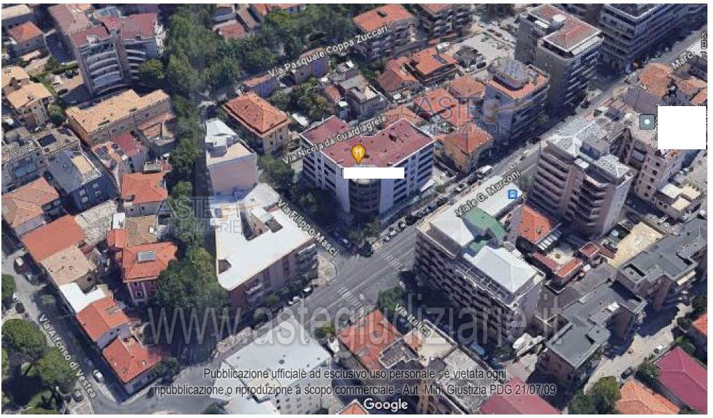 LOTTO 2: Propriété pleine et parfaite du complexe immobilier composé d'un appartement avec garage privé et d'une place de parking extérieure attenante, faisant partie du grand bâtiment, appelé "Palazzo Marconi", avec accès depuis la rue Marconi n° 77 et plus précisément :