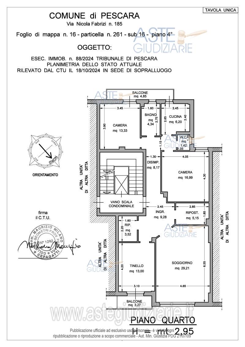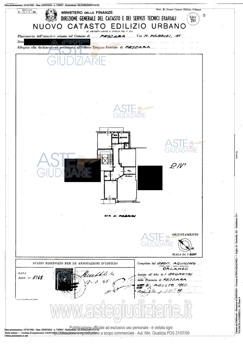Vendita all'asta Senza incanto, con gara telematica asincrona - LOTTO 1: Appartamento situato al 4° piano della palazzina in Pescara alla via Nicola Fabrizi n. 185 munito di ascensore condominiale. Lo stesso è attualmente libero. Prezzo base € 229.215,00 (offerta minima € 171.911,25). Data inizio operazioni di vendita: 02/12/2025 ore 11:00. Professionista delegato alla vendita Dott. Pierluigi Di Filippo. Custode Giudiziario Dott. Pierluigi Di Filippo - Email "pierluigi.difilippo@gmail.com". Rif. Tribunale di Pescara - Espropriazione immobiliare (cartabia) n. 88/2024