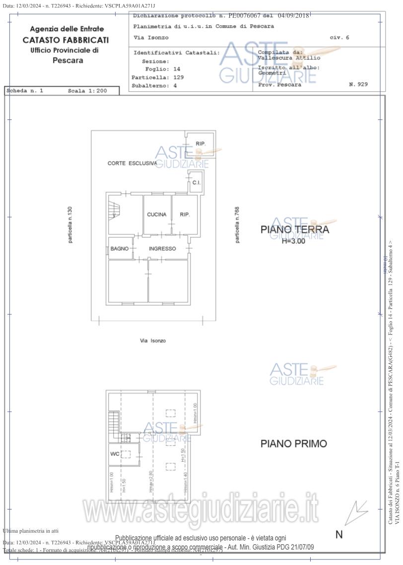 Vendita all'asta Senza incanto, con gara telematica asincrona - LOTTO UNICO: Fabbricato da cielo a terra costituito da piano terra e piano primo (sottotetto), con annessa area scoperta,manufatto esterno a uso ripostiglio e vano centrale idrica. Prezzo base € 429.652,00 (offerta minima € 322.239,00). Data inizio operazioni di vendita: 21/04/2026 ore 12:00. Professionista delegato alla vendita Dott. Sergio Salvatori - Email "serxxser@gmail.com"; Tel. 0854219492. Custode Giudiziario Dott. Sergio Salvatori - Email "serxxser@gmail.com"; Tel. 0854219492. Rif. Tribunale di Pescara - Espropriazione immobiliare (cartabia) n. 190/2023