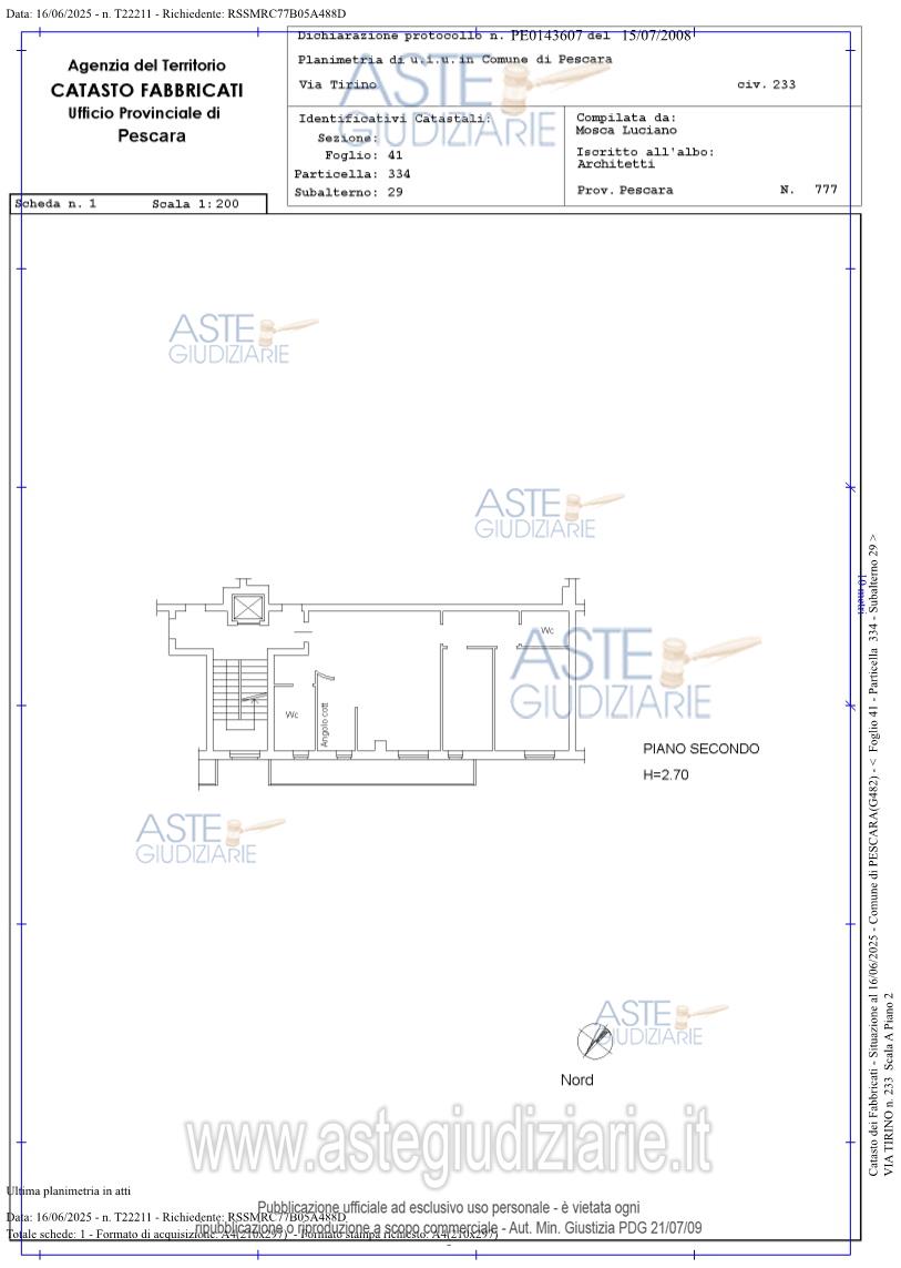 Vendita all'asta Senza incanto, con gara telematica asincrona - LOTTO UNICO: Appartamento al piano secondo. Prezzo base € 135.311,83 (offerta minima € 101.483,87). Data inizio operazioni di vendita: 01/04/2026 ore 10:00. Professionista delegato alla vendita Dott. Gianluca Marini. Custode Giudiziario Dott. Gianluca Marini - Email "studiocommercialisti.marini@gmail.com". Rif. Tribunale di Pescara - Espropriazione immobiliare (cartabia) n. 57/2025