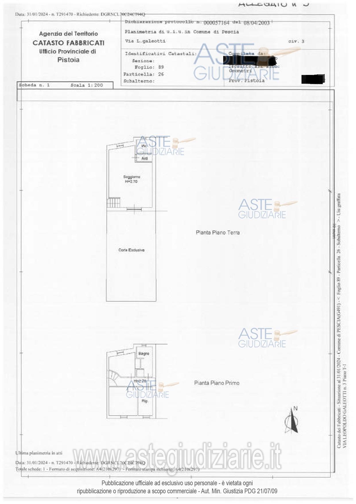 Vendita all'asta Senza incanto, con gara telematica asincrona - LOTTO 1: LOTTO I (composto dai lotti nr. 1 e 2 della perizia).Diritto di piena proprietà su porzione di fabbricato unifamiliare del tipo terra tetto, che si sviluppa su duepiani fuori terra con corte.Diritto di piena proprietà su ulteriore porzione di fabbricato di tipo terratetto in via Galeotti 3.Si precisa che i beni, sebbene catastalmente distinti, in realtà sono urbanisticamente fusiinsieme. Prezzo base € 102.000,00 (offerta minima € 76.500,00). Data inizio operazioni di vendita: 28/01/2026 ore 10:00. Giudice Dott. Nicoletta Curci. Custode Giudiziario Dott. Marjus Meta - Email "info@bertivettori.it"; Tel. 0573364553. Rif. Tribunale di Pistoia - Liquidazione controllata(cci) n. 14/2023