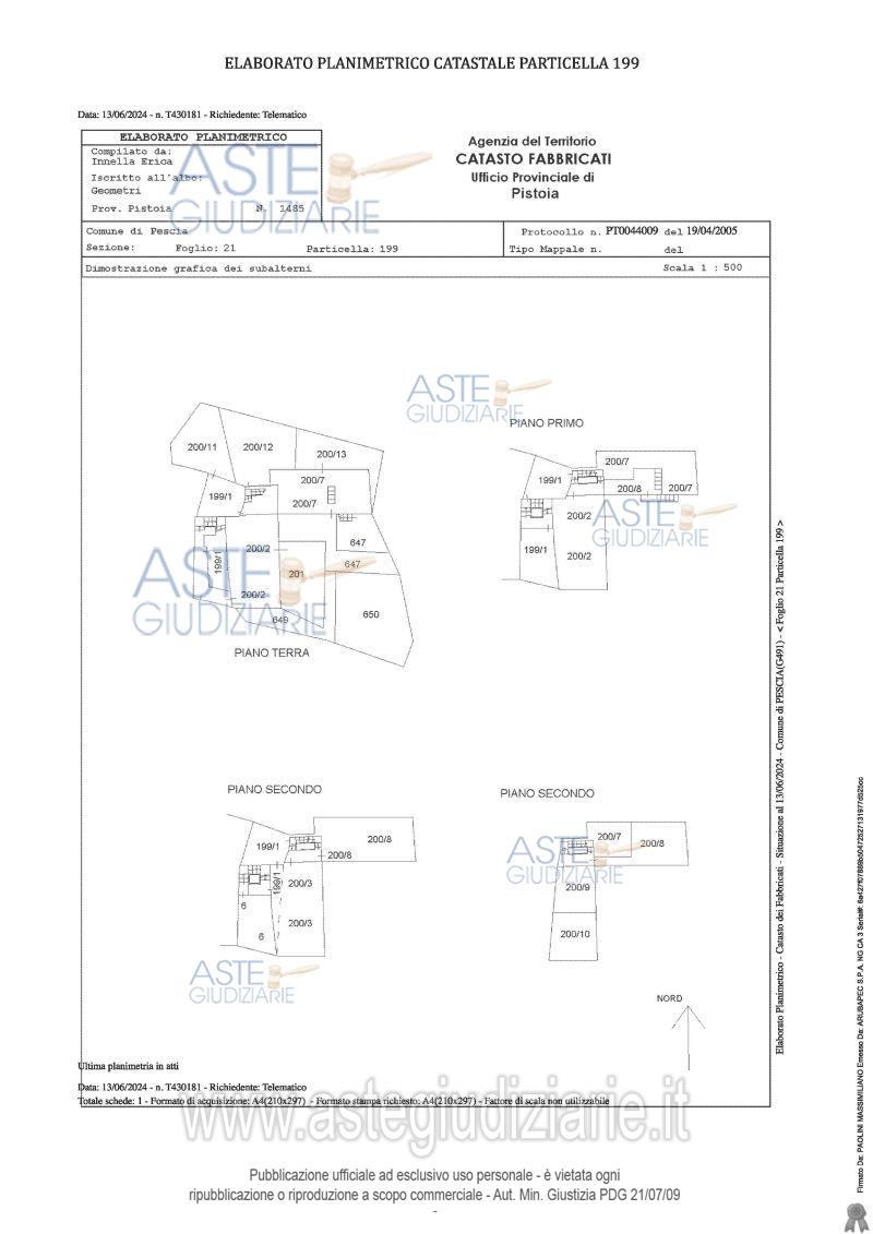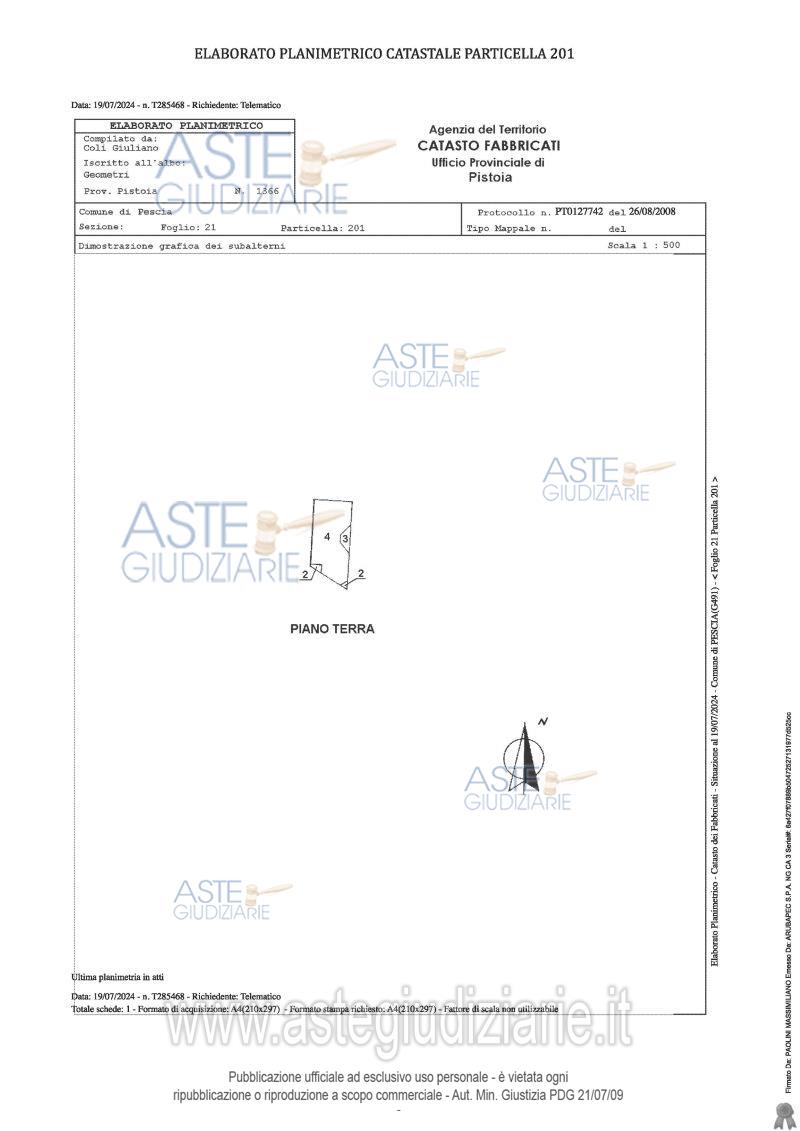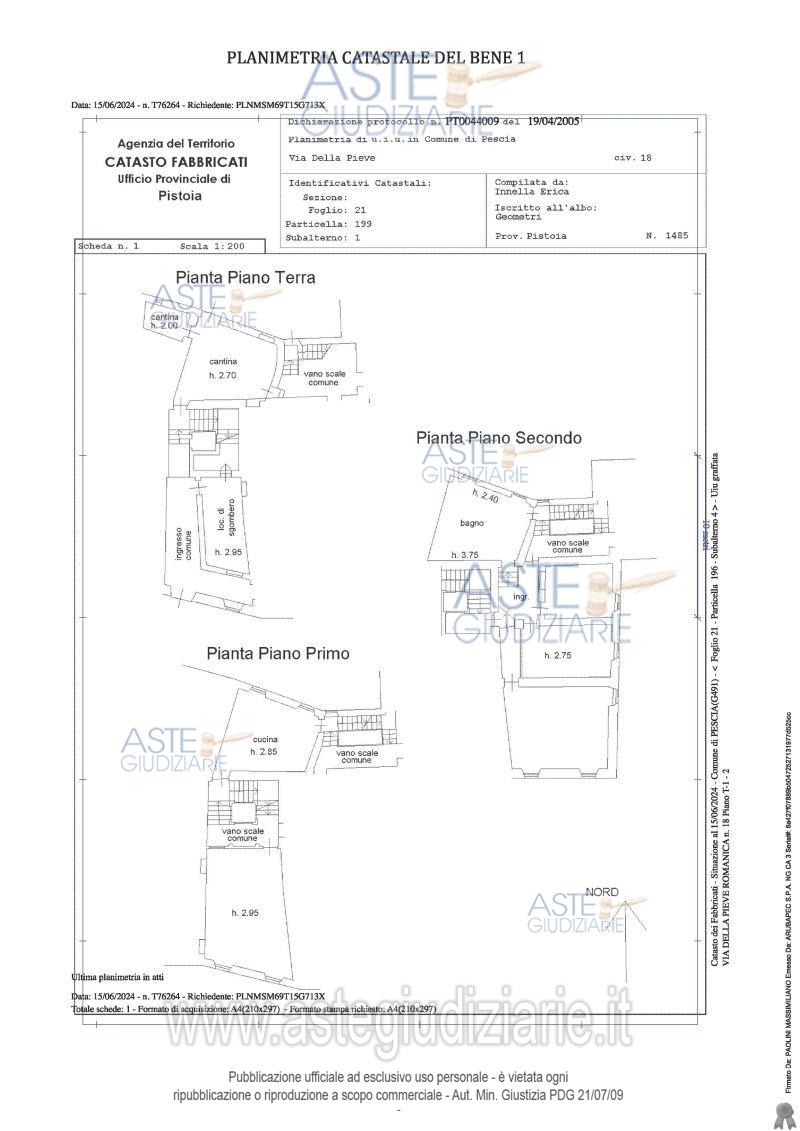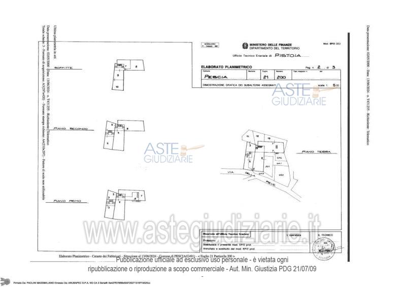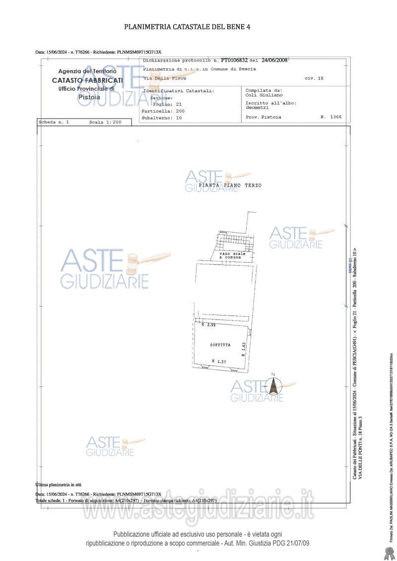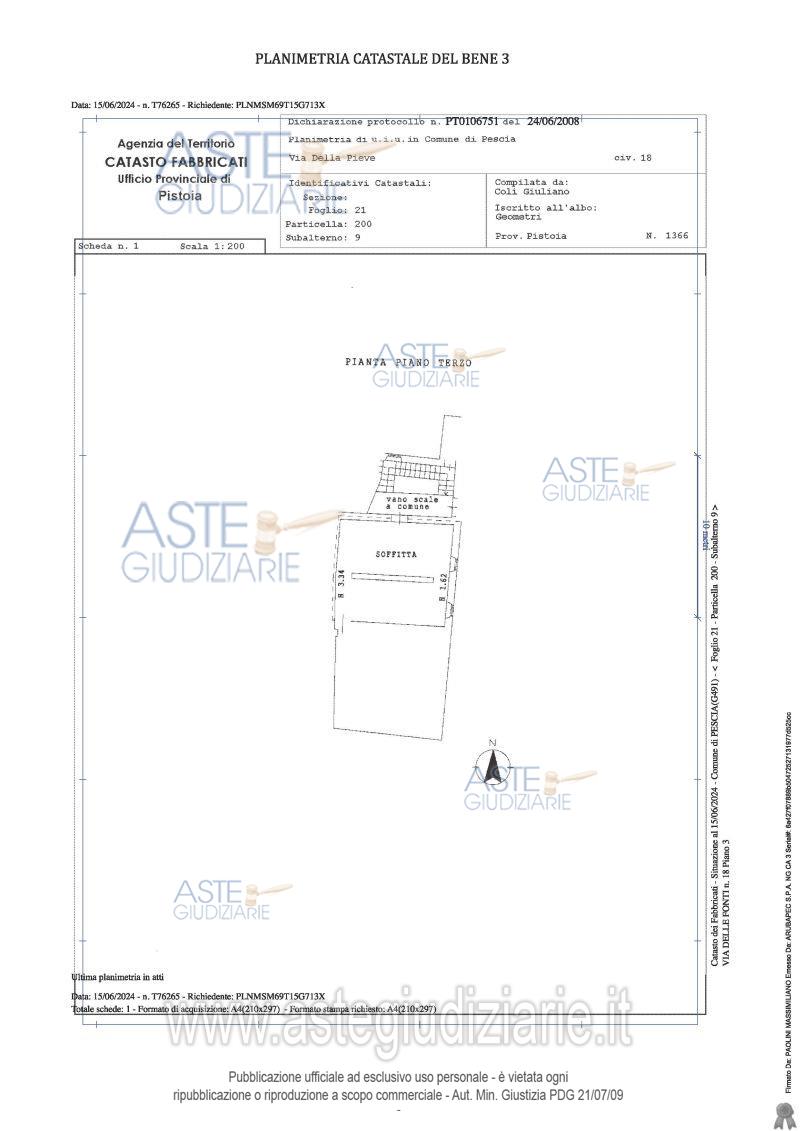 Vendita all'asta Senza incanto, con gara telematica asincrona - LOTTO UNICO: Appartamento ad uso civile abitazione di tipo economico, posto ai piani primo e secondo, composto al piano primo da cucina con soggiorno divisi fra loro dal vano scale comune ed al piano secondo da ingresso,disimpegno, tre camere e bagno accessibile dal vano scale comune posto a nord del fabbricato, oltre due cantine, locale di sgombero al piano terra, resede esclusiva e comproprietà di 1/2 su due locali ad uso soffitta posti al piano terzo e 1/3 sulle corti di pertinenza. Prezzo base € 20.000,00 (offerta minima € 15.000,00). Data inizio operazioni di vendita: 26/03/2026 ore 10:30. Professionista delegato alla vendita Avv. Filippo Favi - Email "filippo@avvocatofavi.it". Custode Giudiziario Isveg - Email "prenota.pt@isveg.it". Rif. Tribunale di Pistoia - Espropriazione immobiliare (cartabia) n. 76/2024