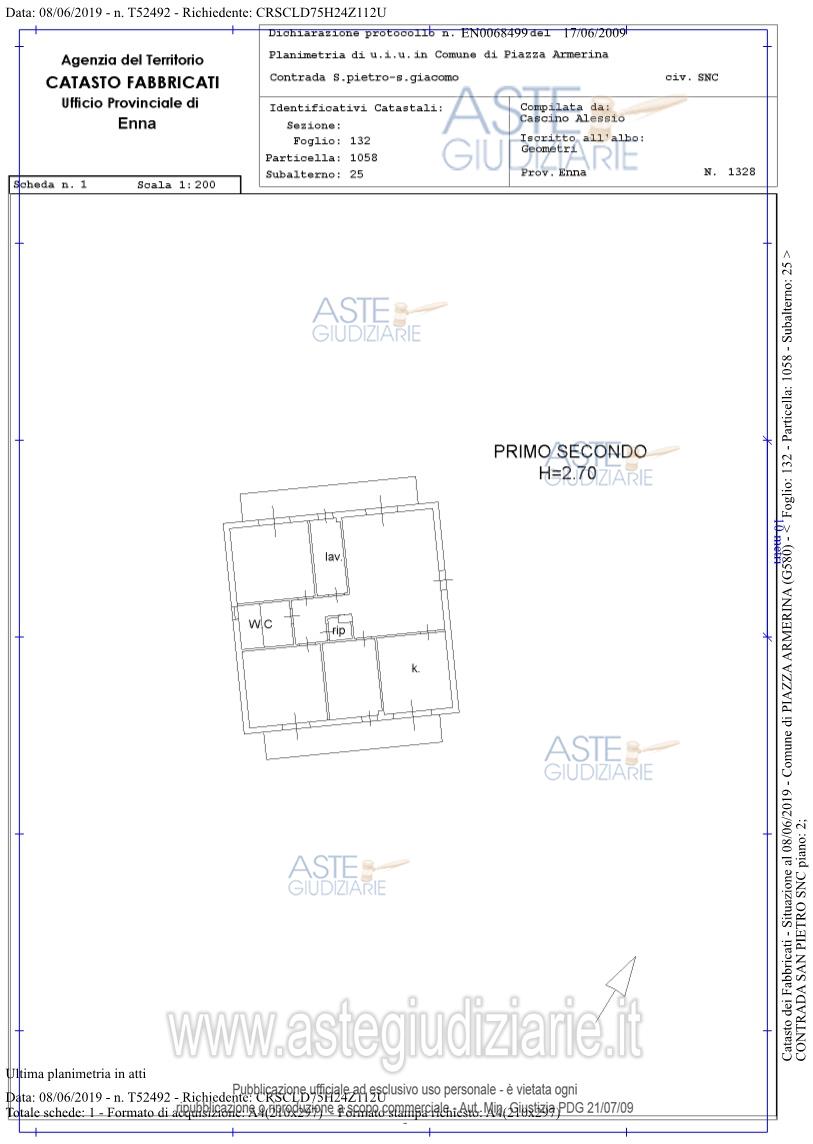 Vendita all'asta Senza incanto, con gara telematica sincrona mista - LOTTO 1: appartamento di civile abitazione posto al secondo piano di uno stabile condominiale in Piazza Armerina alla Via Lucio Piccolo 1, identificato nl NCEU al foglio 132 particella 1058 sub. 25, zona . Prezzo base € 103.500,00 (offerta minima € 77.625,00). Data vendita 09/07/2026 ore 12:00. Giudice Nunzio Noto. Professionista delegato alla vendita Avv. Giuliana Vittoria Conte - Email "studiolegalecantoni@gmail.com". Custode Giudiziario Avv. Giuliana Vittoria Conte - Email "studiolegalecantoni@gmail.com"; Tel. 0935510777. Rif. Tribunale di Enna - Esecuzione immobiliare post legge 80 n. 12/2019