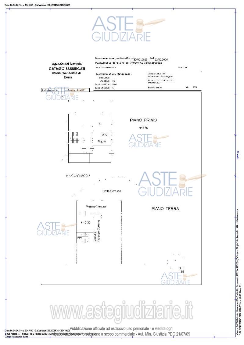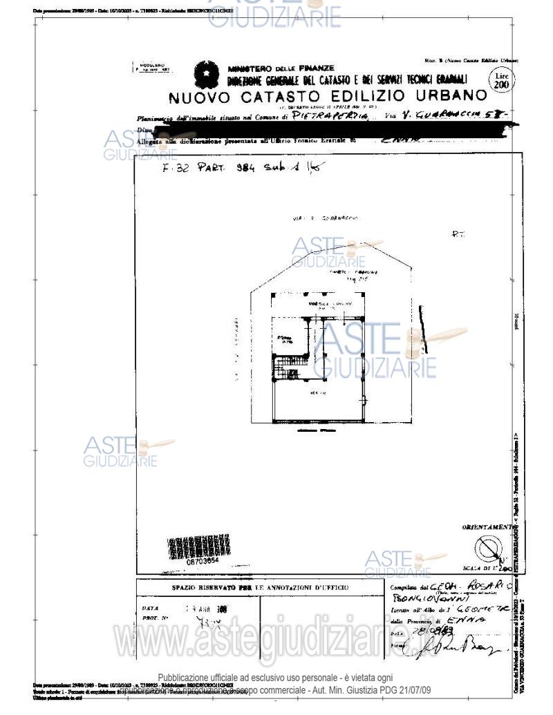 Vendita in attesa dell'emissione del nuovo bando d'asta. LOTTO 1: Intera proprietà di:- appartamento ad uso abitazione civile sito alla Via Guarnaccia n° 55-57 piano T-1 nel Comune di Pietraperzia (EN), identificato al foglio 32 particella 984, subalterno 4, cat. Ultimo prezzo base € 222.470,79 (offerta minima € 166.853,00). Giudice Davide Palazzo. Professionista delegato alla vendita Avv. Antonio Calogero Bevilacqua - Email "antonio@avvbevilacqua.it". Custode Giudiziario Avv. Antonio Calogero Bevilacqua - Email "antonio@avvbevilacqua.it". Rif. Tribunale di Enna - Espropriazione immobiliare (cartabia) n. 29/2023