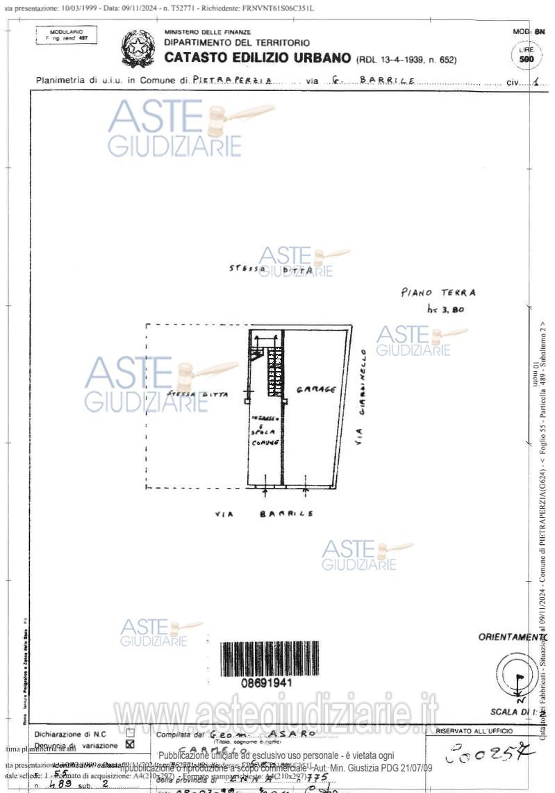 Vendita all'asta Senza incanto, con gara telematica sincrona mista - LOTTO 1: Piena proprietà dell’unità immobiliare (appartamento), sita nel Comune di Pietraperzia (EN), via Giuseppe Barrile n.3, piano secondo, meglio censita nel NCEU del Comune di Pietraperzia al foglio 55, particella 489, subalterno 4, categoria A/2, classe 3, consistenza 7,5 vani, superficie totale 168 mq, totale escluse aree scoperte 159 mq, rendita euro 499,67.=, classe energetica “F”, nonché piena proprietà dell’unità immobiliare (garage), sita nel Comune di Pietraperzia (EN), via Giuseppe Barrile n.1, piano terra, meglio censita nel NCEU del Comune di Pietraperzia, foglio 55, particella 489, subalterno 2, categoria C/6, classe 6, consistenza 47 mq, superficie totale 47 mq, rendita euro 143,21.= (comunque per come meglio descritti in seno all’elaborato di stima meglio di seguito indicato). Prezzo base € 118.100,00 (offerta minima € 88.575,00). Data vendita 04/06/2026 ore 09:30. Professionista delegato alla vendita Avv. Santi Mastroianni - Email "mastroiannilegal@gmail.com"; Tel. 0935576907. Custode Giudiziario Avv. Santi Mastroianni - Email "mastroiannilegal@gmail.com"; Tel. 0935576907. Rif. Tribunale di Enna - Esecuzione immobiliare n. 22/2024