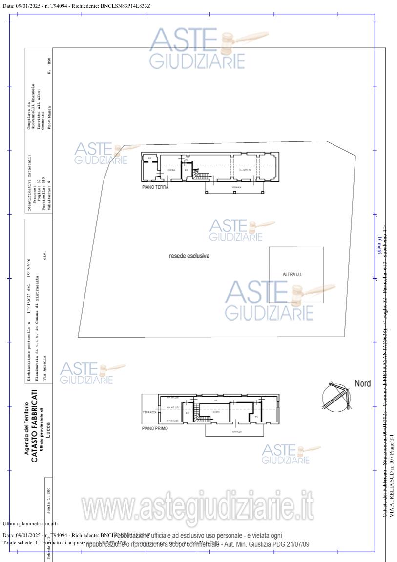 Vendita all'asta Senza incanto, con gara telematica sincrona mista - LOTTO 1: Fabbricato per civile abitazione sito in comune di Pietrasanta, località Manacciola, via Aurelia Sud civico 107 e precisamente posto internamente rispetto alla strada pubblica. Il fabbricato elevat. Prezzo base € 327.750,00 (offerta minima € 245.812,50). Data vendita 05/06/2026 ore 10:00. Giudice Dott. Giulia Simoni. Professionista delegato alla vendita Dott. Chiara Brizzi - Email "c.brizzi@studiobrizzi.net"; Cell. 3470404195; Tel. 058348198. Custode Giudiziario Ivg Di Lucca - Irene Luvisotti - Email "custodieivg@gmail.com"; Tel. 0583418555. Rif. Tribunale di Lucca - Espropriazione immobiliare (cartabia) n. 163/2024