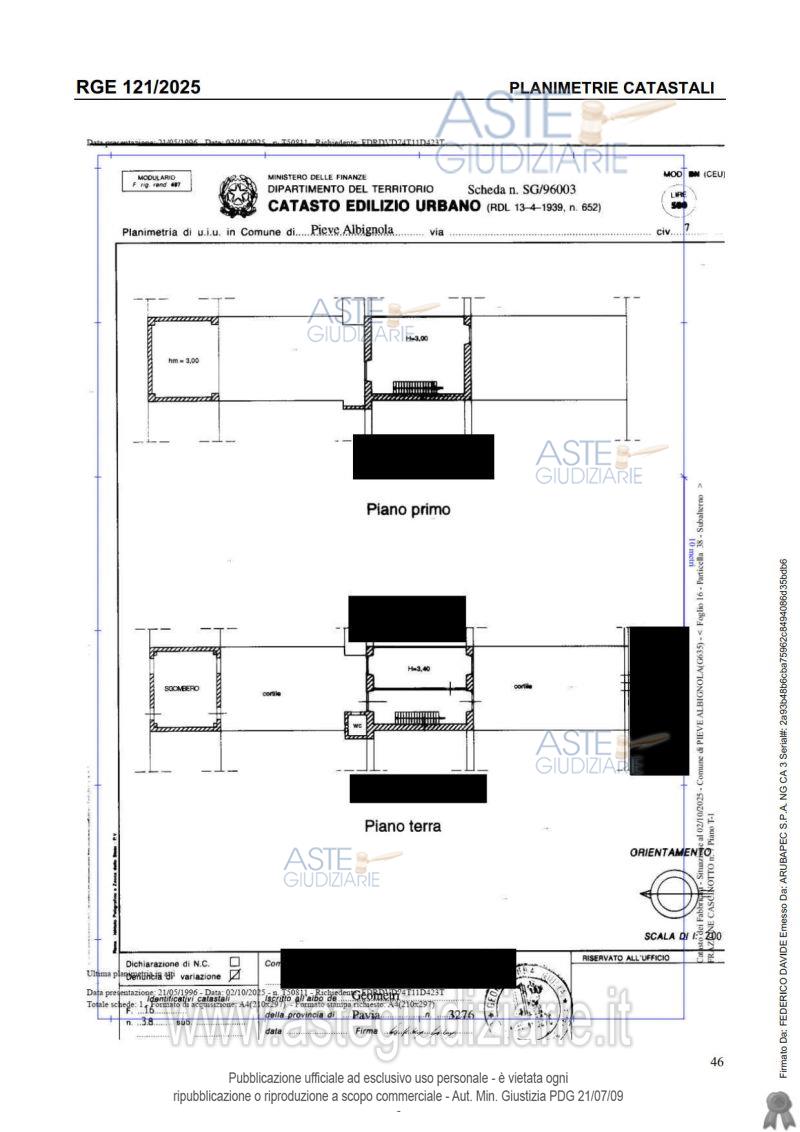 Vendita all'asta Senza incanto, con gara telematica asincrona - LOTTO UNICO: Abitazione a schiera sviluppata su tre livelli collegati da scala interna, con superficie lorda complessiva di 87 mq circa, e così composta: ingresso su soggiorno-pranzo e angolo cottura al piano terra, disimpegno, servizio igienico e camera da letto al piano primo e da mansarda e servizio igienico al piano secondo sottotetto. Prezzo base € 39.100,00 (offerta minima € 29.325,00). Data inizio operazioni di vendita: 18/02/2026 ore 17:00. Giudice Dott. Francesca Paola Claris Appiani. Professionista delegato alla vendita Avv. Davide Pirani - Email "avv.davidepirani@legalepirani.it"; Tel. 038181866. Custode Giudiziario Istituto Vendite Giudiziarie Di Vigevano - Email "immobiliarivigevano@ifir.it"; Tel. 0381691137. Rif. Tribunale di Pavia - Espropriazione immobiliare (cartabia) n. 121/2025