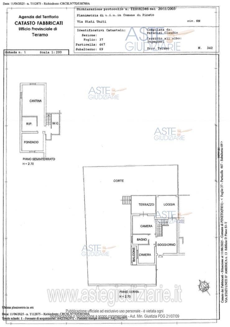 Vendita all'asta Senza incanto, con gara telematica asincrona - LOTTO UNICO: DIRITTI PARI 1/1 DELLA PIENA PROPRIETA': Appartamento di civile abitazione posto al piano terra/seminterrato, comunicante con scala interna, “Palazzina D” sita in Pineto alla Via Stati Uniti d’America n.13. Prezzo base € 164.000,00 (offerta minima € 123.000,00). Data inizio operazioni di vendita: 28/01/2026 ore 10:00. Professionista delegato alla vendita Dott. Danilo Censori - Email "danilocensori@alice.it"; Cell. 3396615837; Tel. 0861244950. Custode Giudiziario Dott. Danilo Censori - Email "danilocensori@alice.it"; Cell. 3396615837; Tel. 0861244950. Rif. Tribunale di Teramo - Espropriazione immobiliare (cartabia) n. 52/2025