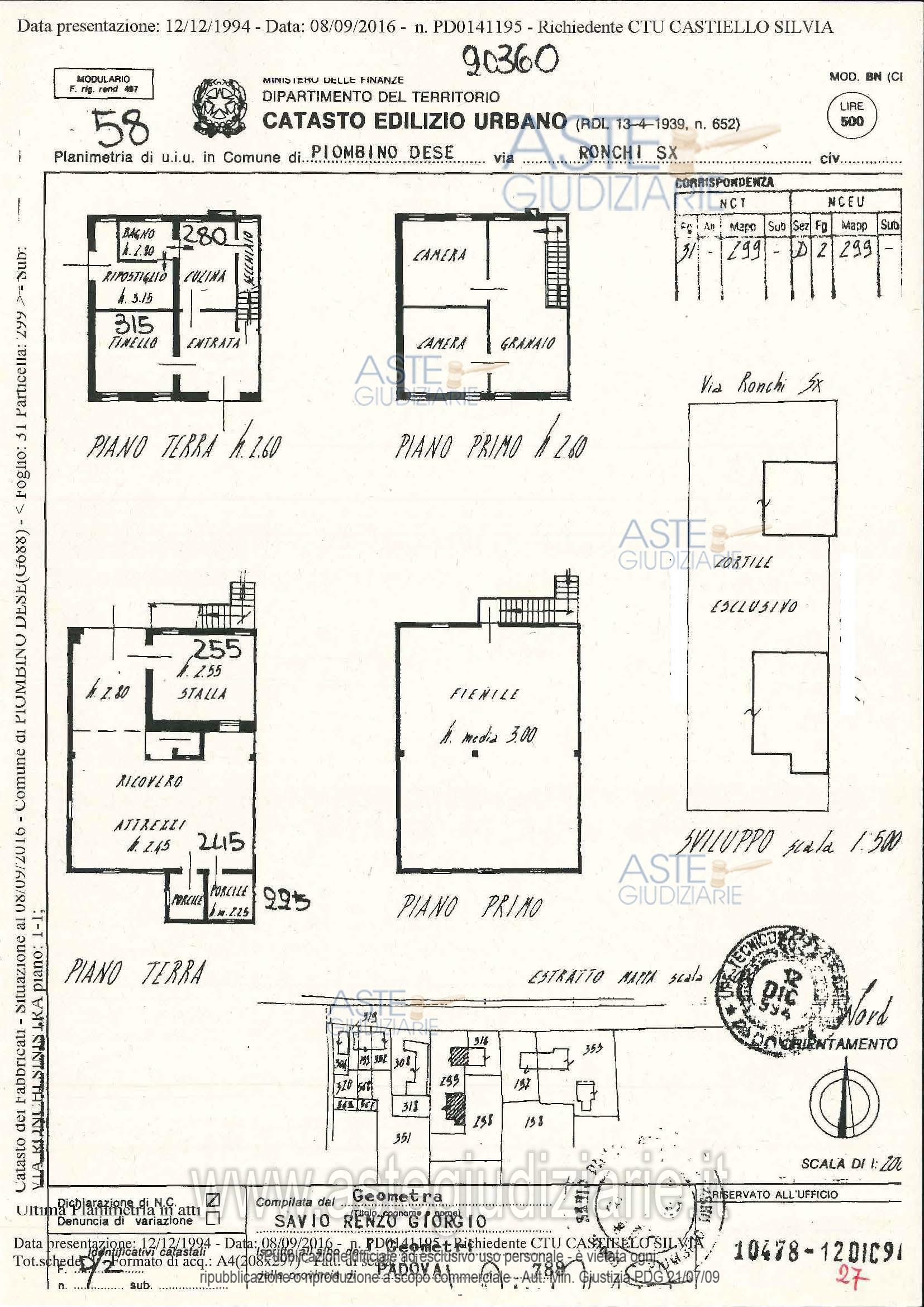 Vendita in attesa dell'emissione del nuovo bando d'asta. LOTTO 1: Lotto 1 - piena proprietà di fabbricato unifamiliare sito in Comune di Piombino Dese (PD), Via Ronchi Sinistra n. 18, da ristrutturare, così composto: al piano terra: ingresso, cucina, secchiaio, tinello bagno, ripostiglio e bagno; al piano primo: 2 camere e granaio; annesso rustico sul retro, da ristrutturare: al piano terra, locali stalla, altezza ml. 2,55, ricovero attrezzi, altezza ml. 2,45; al primo piano fienile di altezza media ml. 3; il tutto su area coperta e scoperta esclusiva di mq. 754. Libero. Ultimo prezzo base € 60.000,00 (offerta minima € 45.000,00). Giudice Rossi. Professionista delegato alla vendita Not. Nicoletta Spina - Email "aste@apepnotai.it"; Tel. 049651228. Custode Giudiziario Apep - Email "visita@apepnotai.it"; Tel. 049651228. Rif. Tribunale di Padova - Esecuzione immobiliare post legge 80 n. 640/2015