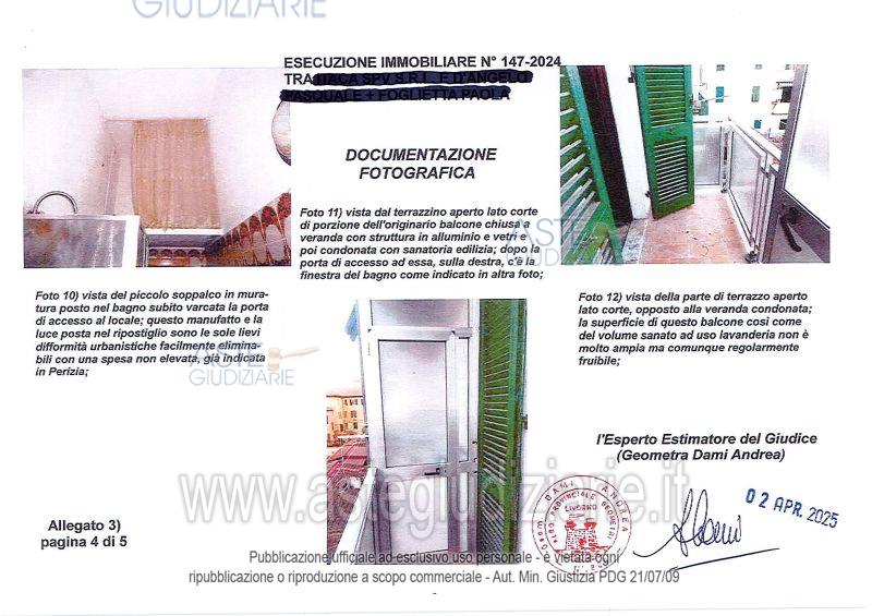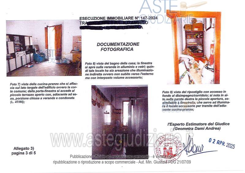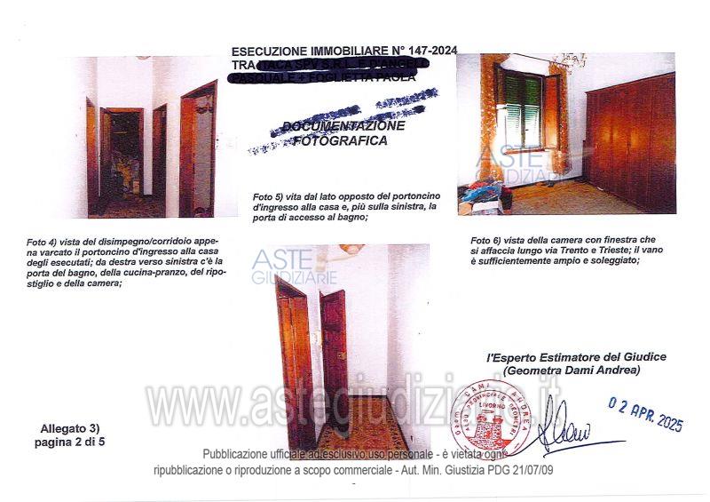 Vendita all'asta Senza incanto, con gara telematica asincrona - LOTTO UNICO: Appartamento al piano secondo composto da due vani ed accessori. Prezzo base € 65.000,00 (offerta minima € 48.750,00). Data inizio operazioni di vendita: 21/11/2025 ore 12:00. Professionista delegato alla vendita Avv. Paolo Musetti. Custode Giudiziario Istituto Vendite Giudiziarie Di Pisa - Email "prenotazionilivorno@astagiudiziaria.com". Rif. Tribunale di Livorno - Espropriazione immobiliare (cartabia) n. 147/2024
