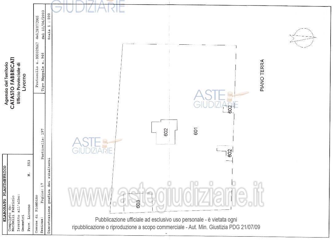 Vendita in attesa dell'emissione del nuovo bando d'asta. LOTTO UNICO: Fabbricato posto in Comune di Piombino, Loc. Le Guinzane n.24, posto su due pianifuori terra, collegati tra loro da scala esterna al piano primo. Quattro vani,disimpegno, bagno e piccolo ripostiglio sottoscala. Il piano primo è composto da duevani oltre a cucina, corridoio e due wc. Ultimo prezzo base € 267.000,00 (offerta minima € 200.250,00). Giudice Simona Capurso. Professionista delegato alla vendita Avv. Marco Pellegrini. Custode Giudiziario Istituto Vendite Giudiziarie S.R.L. - Email "prenotazionilivorno@astagiudiziaria.com". Rif. Tribunale di Livorno - Espropriazione immobiliare (cartabia) n. 16/2024