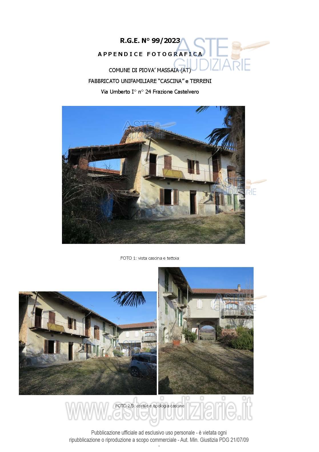 Vendita all'asta Senza incanto, con gara telematica asincrona - LOTTO UNICO: Fabbricato ad uso residenziale composto da due piani fuori terra, seminterrato e primo piano oltre due terreni. Prezzo base € 15.103,13 (offerta minima € 11.327,34). Data inizio operazioni di vendita: 25/03/2026 ore 15:00. Giudice Dott. Paola Amisano. Professionista delegato alla vendita Avv. Luisa Dabbene - Email "l.dabbene@avvocatigcd.it". Custode Giudiziario Ifir Piemonte Ivg Srl - Email "richiestevisite.asti@ivgpiemonte.it". Rif. Tribunale di Asti - Espropriazione immobiliare (cartabia) n. 99/2023