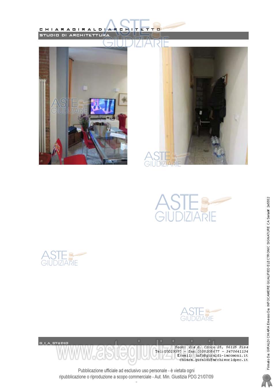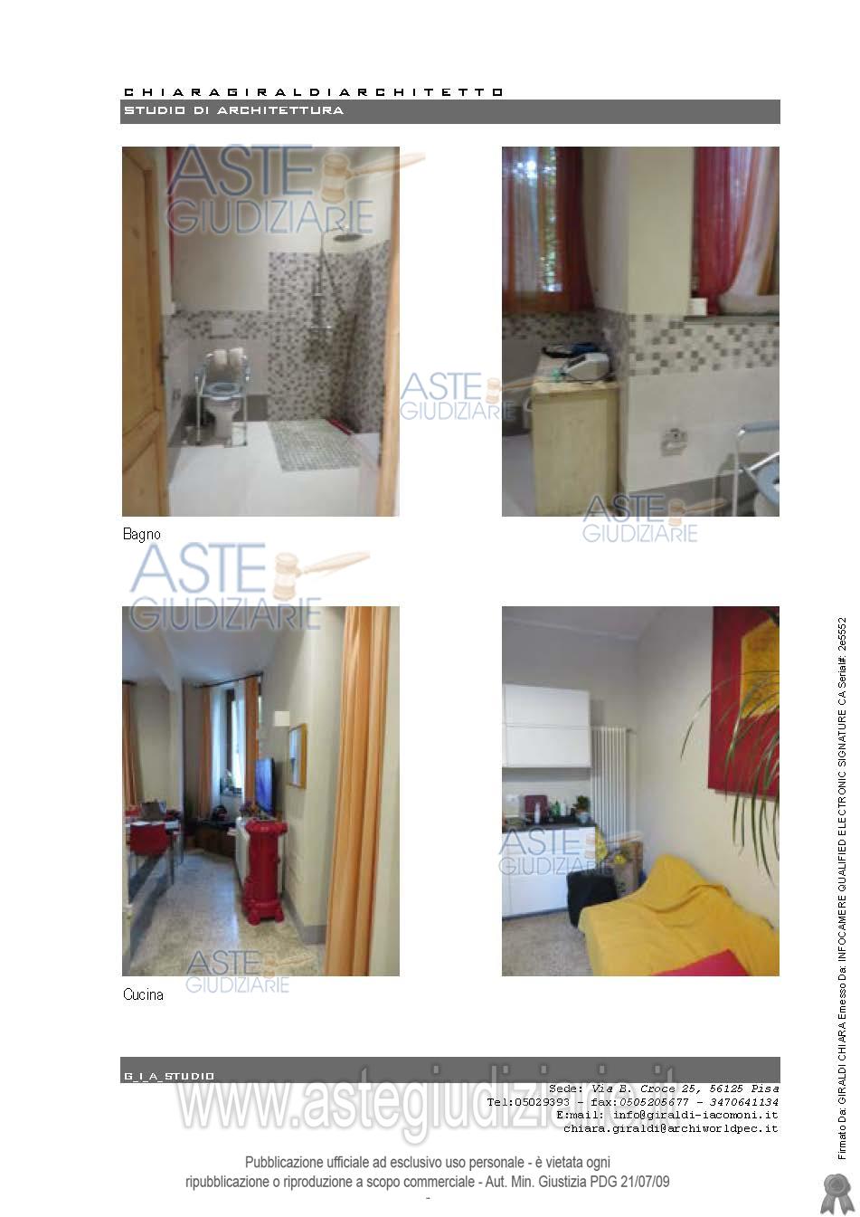 Vendita all'asta Senza incanto, con gara telematica asincrona - LOTTO 1: appartamento per civile abitazione risulta essere composto da ingresso, soggiorno, cucina, bagno, ripostiglio e camera.Appartamento per civile abitazione facente parte di maggior fabbricato costituito principalmente da due blocchi di appartamenti, avente ciascun blocco accesso da propria scala identificata con distinto numero civico; il tutto ubicato in via Mazzini nn. 116-120. L'appartamento è posto al piano terra del fabbricato e ha accesso dal numero civico 120 tramite ampio ingresso condominiale. Prezzo base € 172.500,00 (offerta minima € 129.375,00). Data inizio operazioni di vendita: 22/01/2026 ore 10:00. Giudice Marco Zinna. Professionista delegato alla vendita Dott. Luca Calcagno - Email "STUDIOCALCAGNO@GMAIL.COM"; Tel. 05021065. Custode Giudiziario Dott. Cosimo Erriquez - Email "prenotazionipisa@astagiudiziaria.com"; Tel. 050554790. Rif. Tribunale di Pisa - Esecuzione immobiliare post legge 80 n. 58/2024