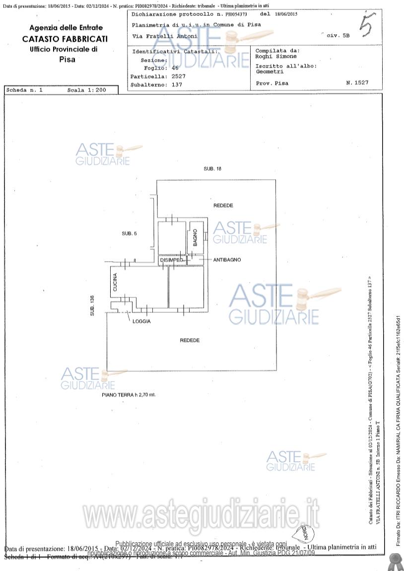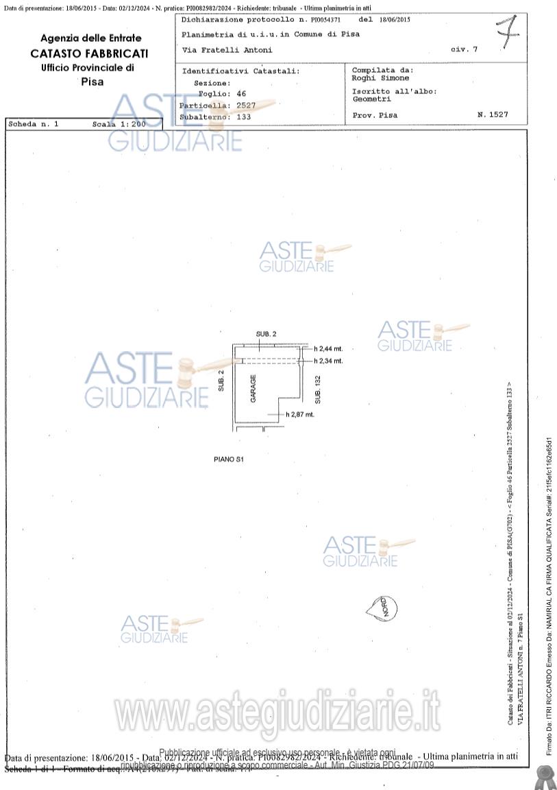 Custode Giudiziario Dott. Cosimo Erriquez - Email "PRENOTAZIONI@ASTAGIUDIZIARIA.COM"; Tel. 050/554790.