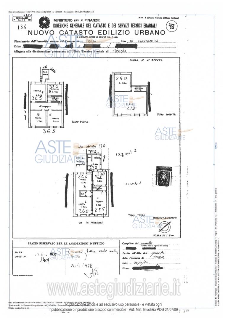 Vendita all'asta Senza incanto, con gara telematica asincrona - LOTTO UNICO: Diritti di piena proprietà su porzione di fabbricato di civile abitazione, da terra a tetto, disposto su tre piani, composto al piano terra da ingresso, sala, cucina, tinello, ripostiglio, forno-sottoscala, wc, cantina e legnaia esterna in scannafosso, piccola corte esterna esclusiva oltre a resede a comune; al piano primo dal pianerottolo, disimpegno, quattro camere e wc doccia; al secondo piano da ampissimo vano ad uso soffitta e camera soffittata tergale, il tutto collegato da scala interna. Prezzo base € 48.500,00 (offerta minima € 36.500,00). Data inizio operazioni di vendita: 22/04/2026 ore 10:30. Giudice Dott. Nicoletta Maria Caterina Curci. Professionista delegato alla vendita Avv. Marco Barbieri - Email "marcobarbierilegale@gmail.com"; Tel. 0573358173. Custode Giudiziario Isveg - Email "prenota.pt@isveg.it". Rif. Tribunale di Pistoia - Espropriazione immobiliare (cartabia) n. 184/2023