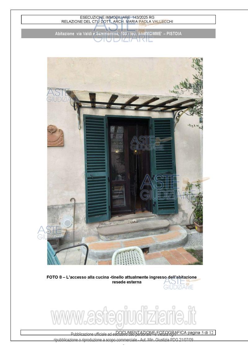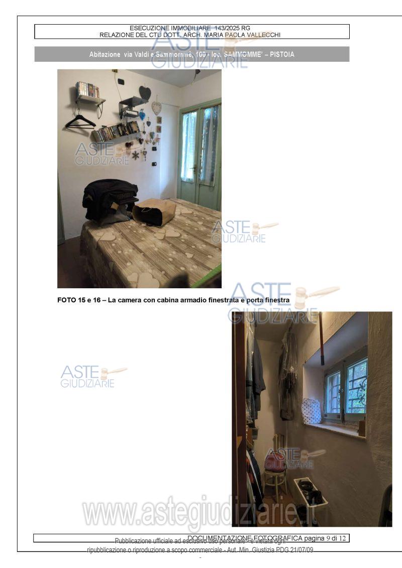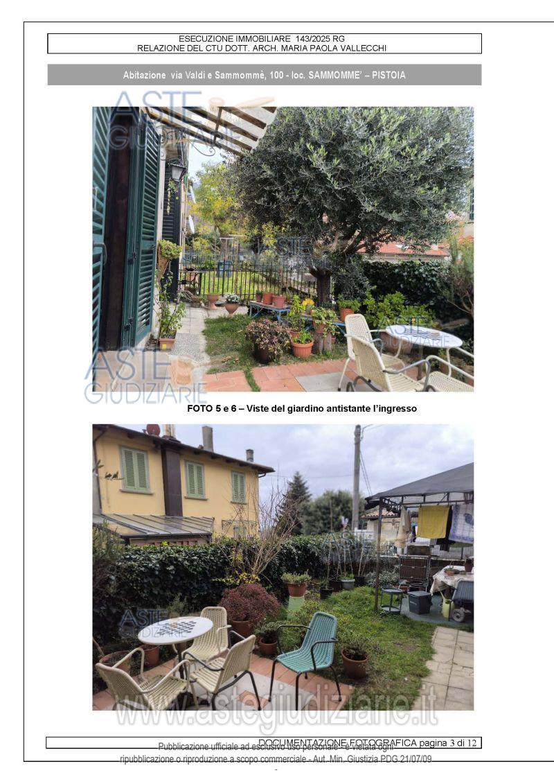 Vendita all'asta Senza incanto, con gara telematica asincrona - LOTTO UNICO: Appartamento al piano terreno, composto da ingresso (attualmente adibito a cameretta), cucina-tinello (a cui si accede dal giardino frontale tramite una porta-finestra), una camera dotata di porta-finestra e cabina armadio finestrata sul lato nord, un bagno con doccia e un ripostiglio in parte sotto scala. Prezzo base € 50.000,00 (offerta minima € 37.500,00). Data inizio operazioni di vendita: 11/06/2026 ore 13:00. Professionista delegato alla vendita Avv. Alessandra Aiuti - Email "info@alessandraaiuti.it;alessandra.aiuti@gmail.com"; Tel. 339 4114290. Custode Giudiziario Is.Ve.G. Istituto Vendite Giudiziarie S.R.L - Email "prenota.pt@isveg.it;pistoiaimmobiliari@isveg.it". Rif. Tribunale di Pistoia - Espropriazione immobiliare (cartabia) n. 143/2025