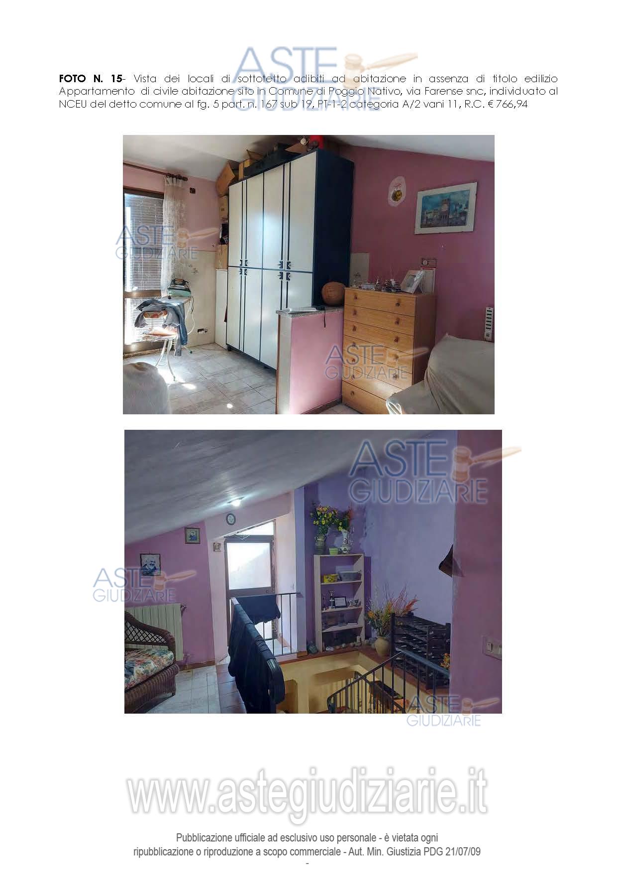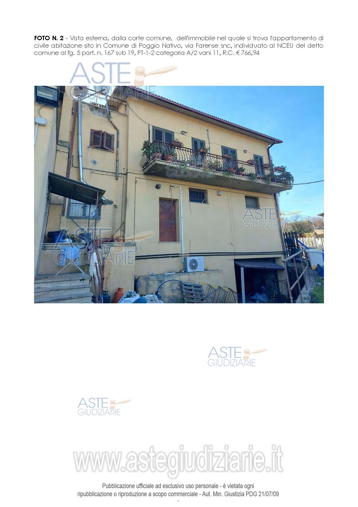 Vendita all'asta Senza incanto, con gara telematica asincrona - LOTTO 1: Ampio appartamento con accesso da distacco su via Farense, composto da ingresso al piano terra, ampio salone con cucina a vista, corridoio disimpegno, tre camere, due bagni, tre balconi al primo piano, locali sottotetto, con bagno e balcone, diritti sulla corte comune di PT part. n. 167. Prezzo base € 46.321,87 (offerta minima € 34.741,40). Data inizio operazioni di vendita: 23/03/2026 ore 10:00. Professionista delegato alla vendita Avv. Gioia Tiberti - Email "gioiatiberti@hotmail.com"; Cell. 3398868951; Tel. 0746760529. Custode Giudiziario Avv. Gioia Tiberti - Email "gioiatiberti@hotmail.com"; Cell. 3398868951; Tel. 0746760529. Rif. Tribunale di Rieti - Espropriazione immobiliare (cartabia) n. 84/2023