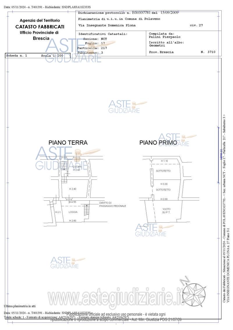 Vendita all'asta Senza incanto, con gara telematica asincrona - LOTTO UNICO: Unità immobiliare a destinazione residenziale al piano terra e primo. Oltre alle proporzionali quote sulle parti comuni dell’edificio. Prezzo base € 10.040,63 (offerta minima € 7.530,48). Data inizio operazioni di vendita: 21/04/2026 ore 11:00. Professionista delegato alla vendita Dott. Stefano Sbardolini - Email "info@astecommissionarie.it". Custode Giudiziario Dott. Stefano Sbardolini - Email "info@astecommissionarie.it". Rif. Tribunale di Brescia - Espropriazione immobiliare (cartabia) n. 322/2024