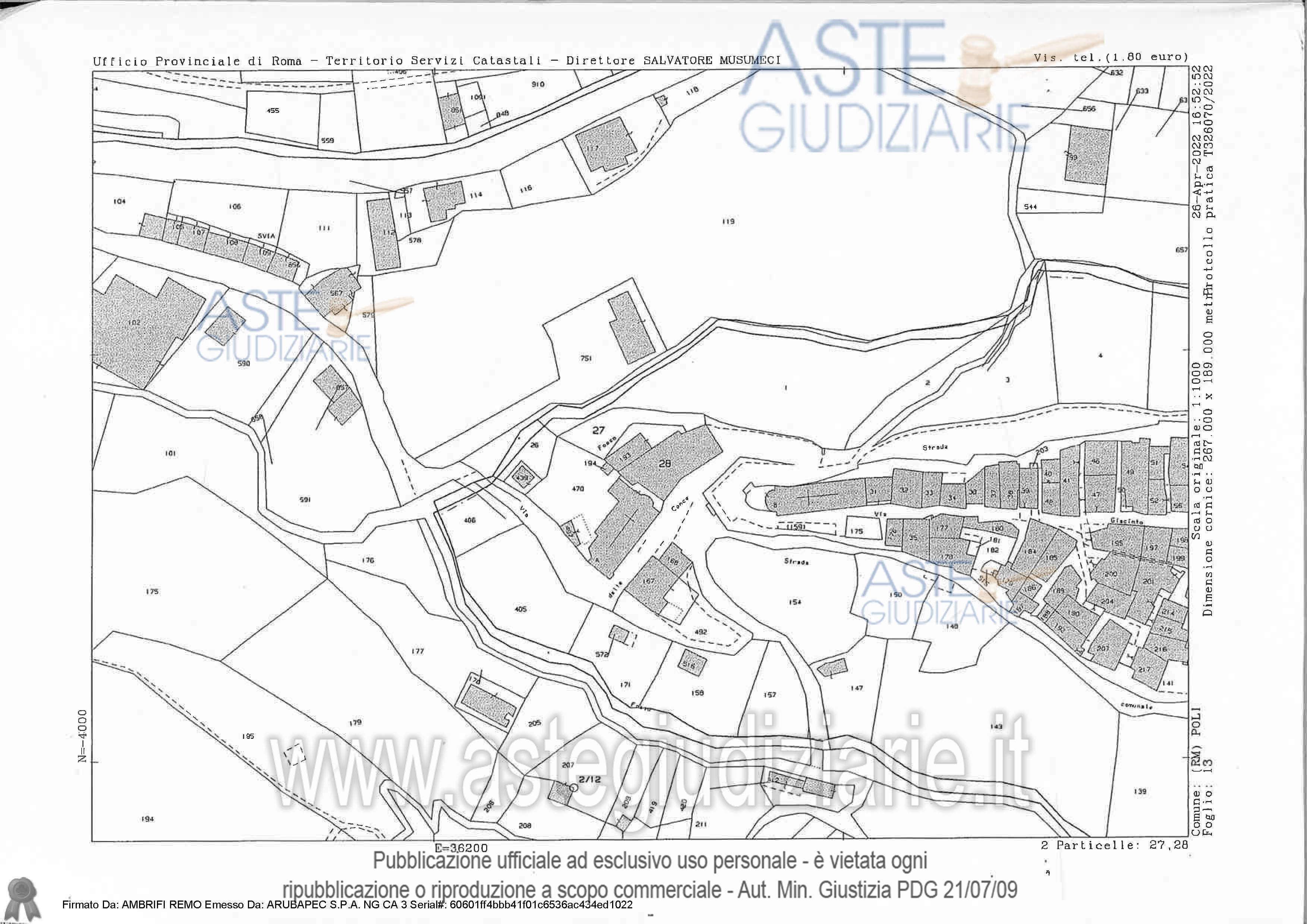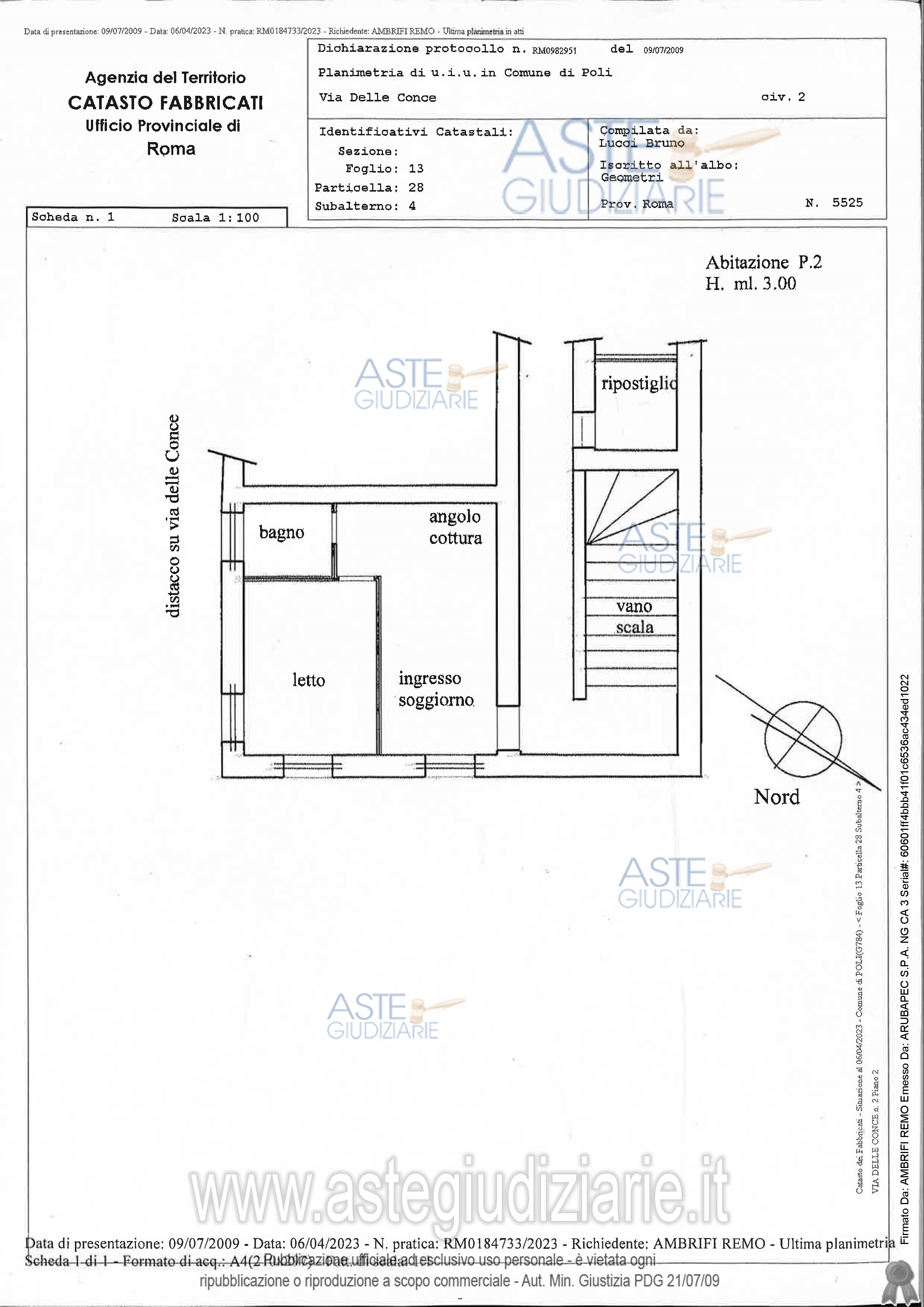 Vendita all'asta Senza incanto, con gara telematica asincrona - LOTTO 01: Quota pari a 1/1 della piena proprietà- abitazione in Poli (Roma), via delle Conce n. 2 identificato in catasto fabbricati N.C.E.U, foglio 13, particella 28, sub. 4, cat. A/4, Via Delle Conce n. 2, piano 2, vani 2,5, sup. cat. 48, R.C. € 71,01 con piccolo magazzino di pertinenza; - terreno identificato in N.C.T., foglio 13, particella 27, cat. Terreno – incolto produttivo, Via Delle Conce, sup. 180 mq. – R.D. € 0,02 – R.A. € 0,01. Prezzo base € 13.605,98 (offerta minima € 10.204,49). Data inizio operazioni di vendita: 04/06/2026 ore 15:00. Giudice Francesco Lupia. Professionista delegato alla vendita Avv. Diego Giugliano - Email "diego.giugliano@libero.it"; Tel. 0744335036. Custode Giudiziario Ivg Di Roma Srl - Email "pvp@visiteivgroma.it"; Tel. 0689569801. Rif. Tribunale di Tivoli - Esecuzione immobiliare post legge 80 n. 113/2022
