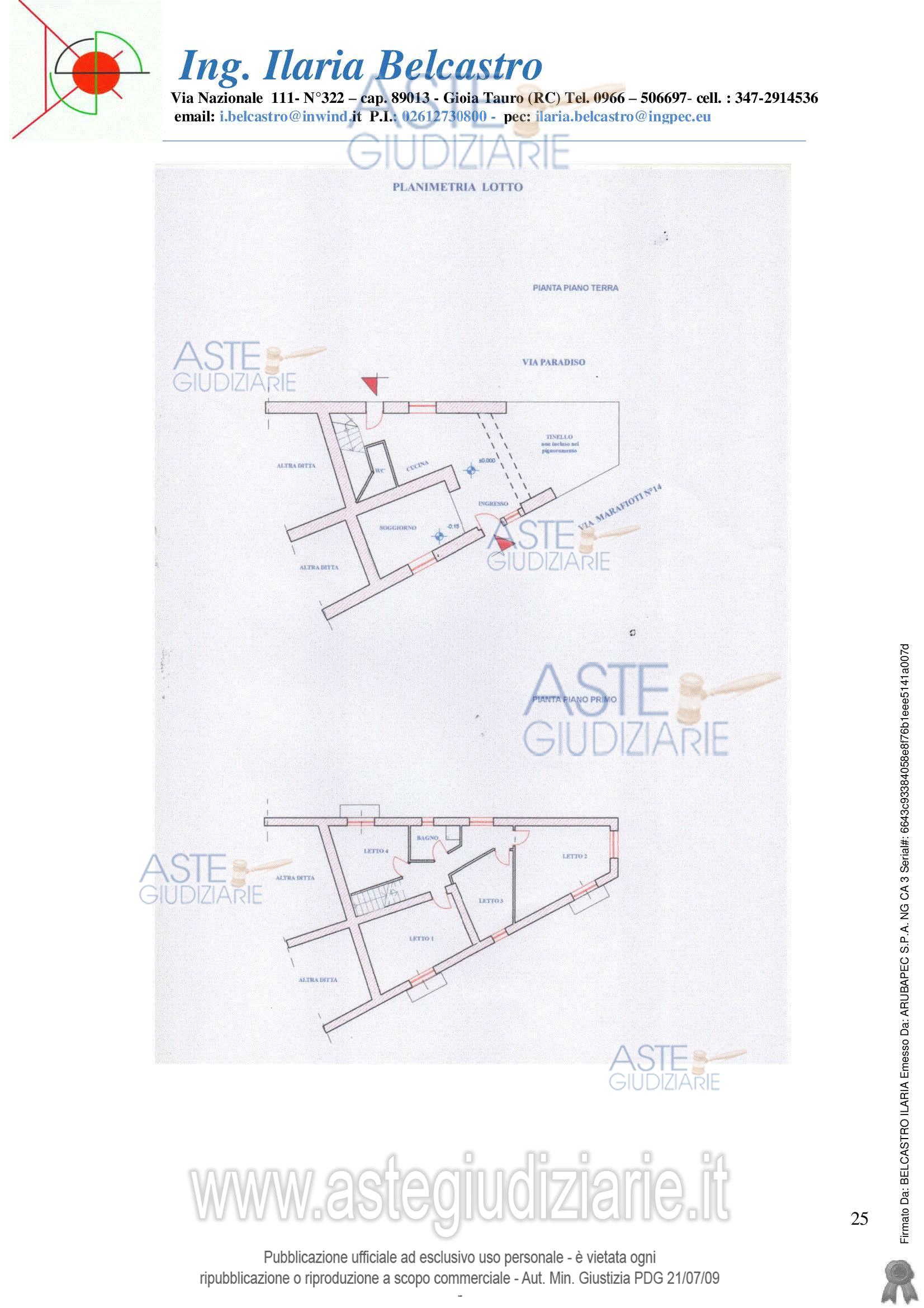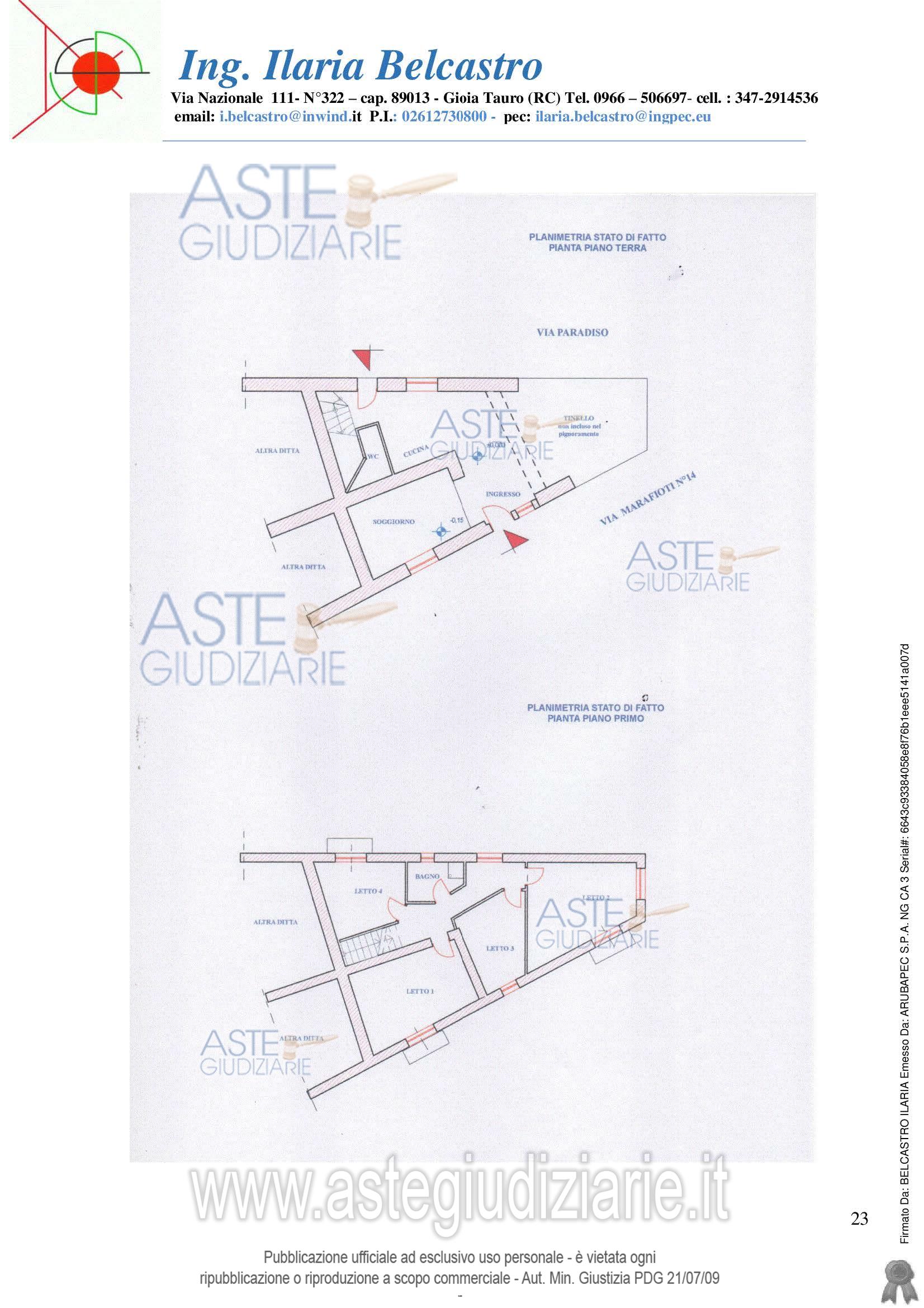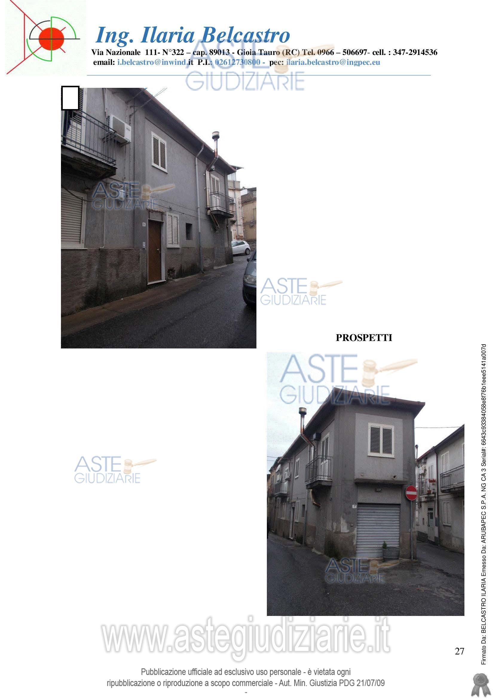 Vendita all'asta Senza incanto, con gara telematica asincrona - LOTTO 1: unità immobiliare ubicata in pieno centro storico, composta da un piano terra e un piano 1°, presenta doppio ingresso uno sulla via principale e l’altro sul retro della cucina, ed è composta al piano terra da disimpegno di ingresso, soggiorno, cucina, tinello (anche se quest’ultimo non è incluso nel procedimento) e un wc, mentre al piano superiore, al quale si accede tramite scala rivestita in marmo travertino, sono presenti ben tra 4 camere da letto e un bagno. Prezzo base € 22.808,89 (offerta minima € 17.106,67). Data inizio operazioni di vendita: 29/04/2026 ore 15:30. Giudice Dott. Marta Caineri. Professionista delegato alla vendita Avv. Fiorella Startari - Email "fiorellastartari@gmail.com"; Cell. 3384057684; Tel. 0966449507. Custode Giudiziario Avv. Fiorella Startari - Email "fiorellastartari@gmail.com"; Cell. 3384057684; Tel. 0966449507. Rif. Tribunale di Palmi - Esecuzione immobiliare post legge 80 n. 72/2022