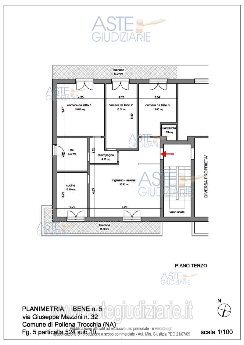 Vendita all'asta Senza incanto, con gara telematica asincrona - LOTTO 5: LOTTO CINQUE – PIENA PROPRIETA’ DI IMMOBILE UBICATO A POLLENA TROCCHIA (NA) – VIA GIUSEPPE MAZZINI N. 32 – PART. 524 SUB 10, PIANO 3. L’appartamento è localizzato al piano terzo del fabbricato, accessibile dal pianerottolo centrale a servizio di due unità per piano. Dall’ingresso si accede direttamente ad ampio salone, con cucina-pranzo con esposizione verso nord-ovest, con ampio balcone lineare; le camere da letto sono sul lato opposto con esposizione. Prezzo base € 57.463,17 (offerta minima € 43.097,38). Data inizio operazioni di vendita: 25/11/2025 ore 15:30. Giudice Dott. Miriam Valenti. Professionista delegato alla vendita Dott. Enzo Sorvino - Email "enzo_sorvino@fastwebnet.it"; Cell. 3382694153; Tel. 08119575035. Custode Giudiziario Dott. Enzo Sorvino - Email "enzo_sorvino@fastwebnet.it"; Cell. 3382694153; Tel. 08119575035. Rif. Tribunale di Nola - Esecuzione immobiliare post legge 80 n. 300/2019