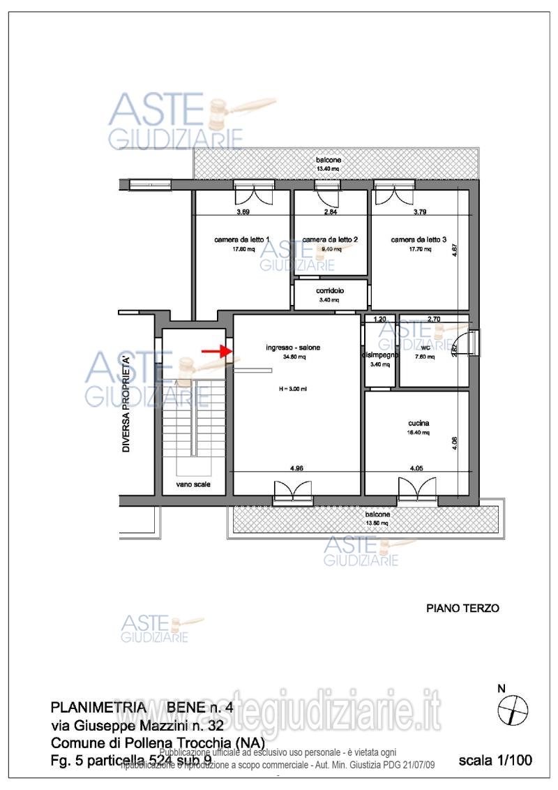 Vendita all'asta Senza incanto, con gara telematica asincrona - LOTTO 1: LOTTO UNO – PIENA PROPRIETA’ DI IMMOBILE UBICATO A POLLENA TROCCHIA (NA) – VIA GIUSEPPE MAZZINI N. 32 – PART. 524 SUB 5, al piano secondo della costruzione di cui è parte, è accessibile dal pianerottolo centrale a servizio di due unità per piano. Prezzo base € 47.502,29 (offerta minima € 35.626,72). Data inizio operazioni di vendita: 25/11/2025 ore 15:30. Giudice Dott. Miriam Valenti. Professionista delegato alla vendita Dott. Enzo Sorvino - Email "enzo_sorvino@fastwebnet.it"; Cell. 3382694153; Tel. 08119575035. Custode Giudiziario Dott. Enzo Sorvino - Email "enzo_sorvino@fastwebnet.it"; Cell. 3382694153; Tel. 08119575035. Rif. Tribunale di Nola - Esecuzione immobiliare post legge 80 n. 300/2019