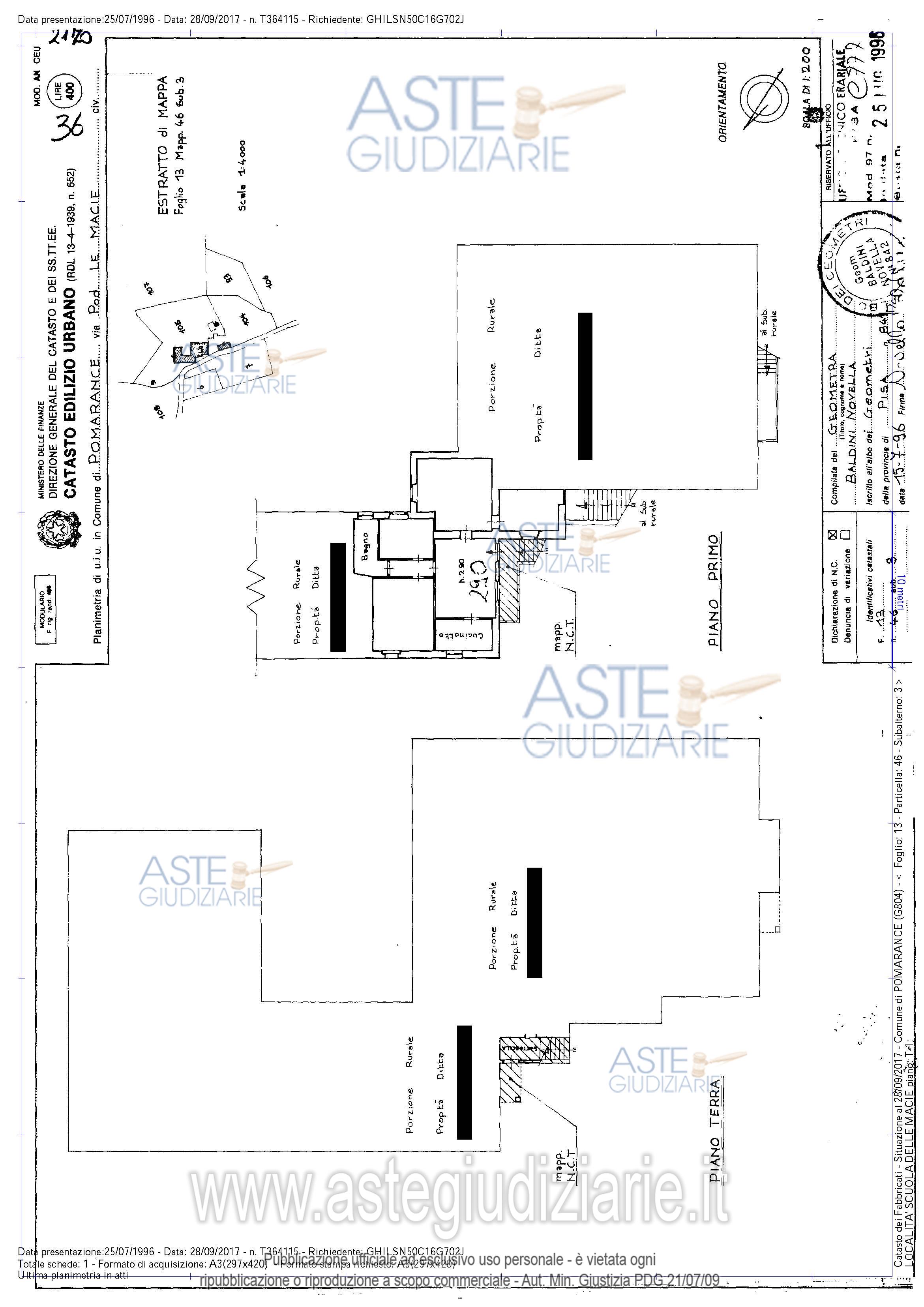 Vendita all'asta Senza incanto, con gara telematica sincrona mista - LOTTO 1: In Comune di POMARANCE (PI), Podere Macie Secondo, numero civico 36, al piano primo di un maggior fabbricato, piena proprietà dell’intero di appartamento per abitazione. Prezzo base € 57.000,00 (offerta minima € 42.750,00). Data vendita 10/04/2026 ore 15:00. Giudice Laura Pastacaldi. Professionista delegato alla vendita Not. Anna Gaudiano. Custode Giudiziario Dott. Cosimo Erriquez - Email "prenotazionipisa@astagiudiziaria.com". Rif. Tribunale di Pisa - Esecuzione immobiliare post legge 80 n. 34/2017