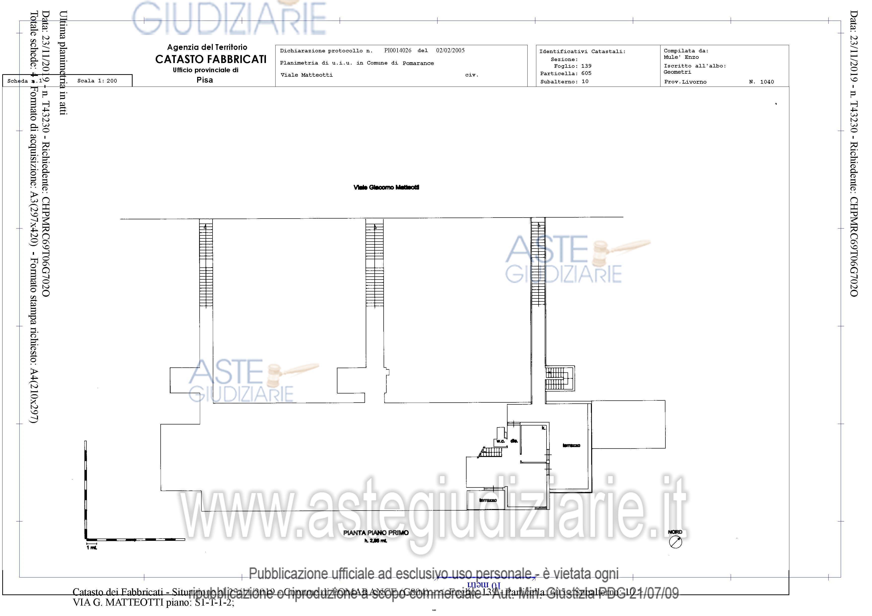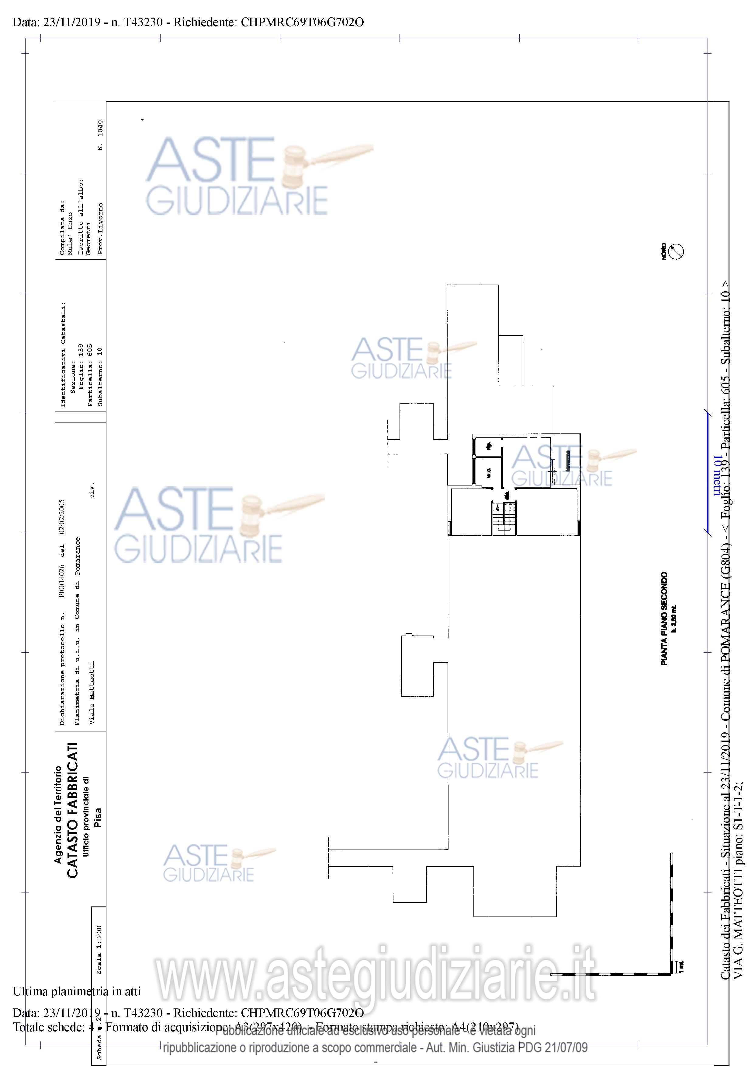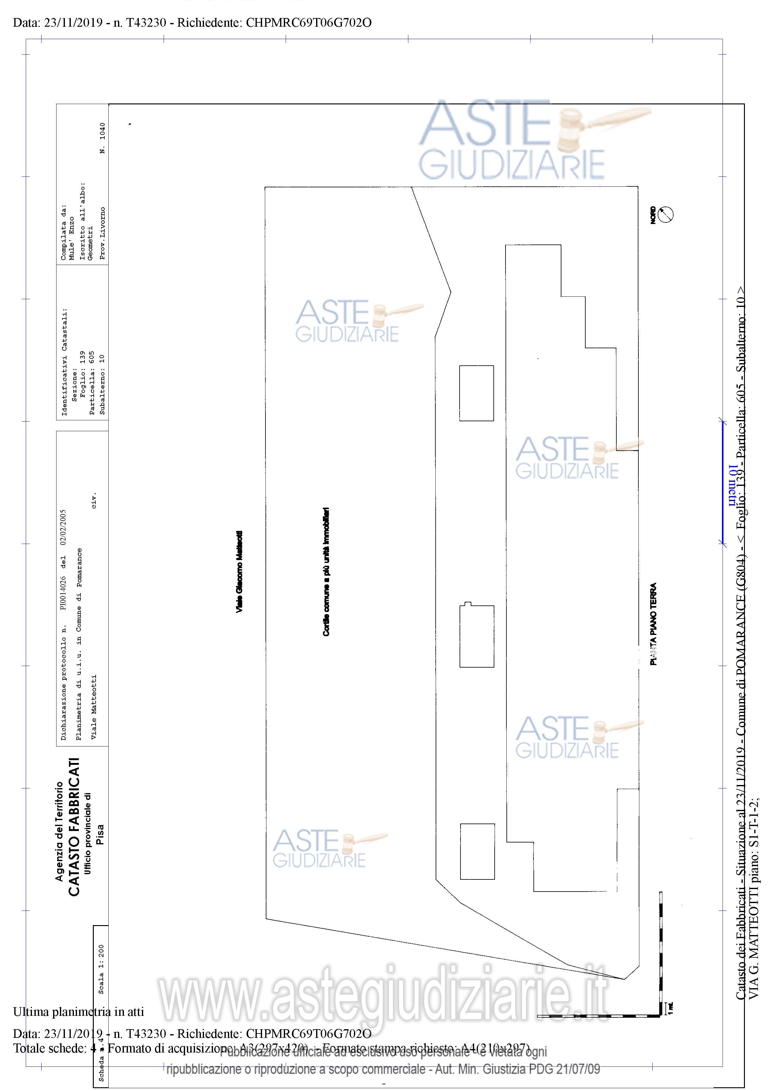 Vendita all'asta Senza incanto, con gara telematica sincrona mista - LOTTO UNICO: In Pomarance, frazione Montecerboli, via Giacomo Matteotti numero civico 47, piena proprietà dell’intero di appartamento per civile abitazione posto ai piani primo e secondo di maggior fabbricato residenziale condominiale strutturato su quattro livelli oltre a locale garage al piano seminterrato. Prezzo base € 62.000,00 (offerta minima € 46.500,00). Data vendita 12/11/2025 ore 09:30. Giudice Dott. Marco Zinna. Professionista delegato alla vendita Not. Jessica Dal Canto. Custode Giudiziario Cosimo Erriquez - Email "prenotazionipisa@astagiudiziaria.com". Rif. Tribunale di Pisa - Esecuzione immobiliare post legge 80 n. 217/2019