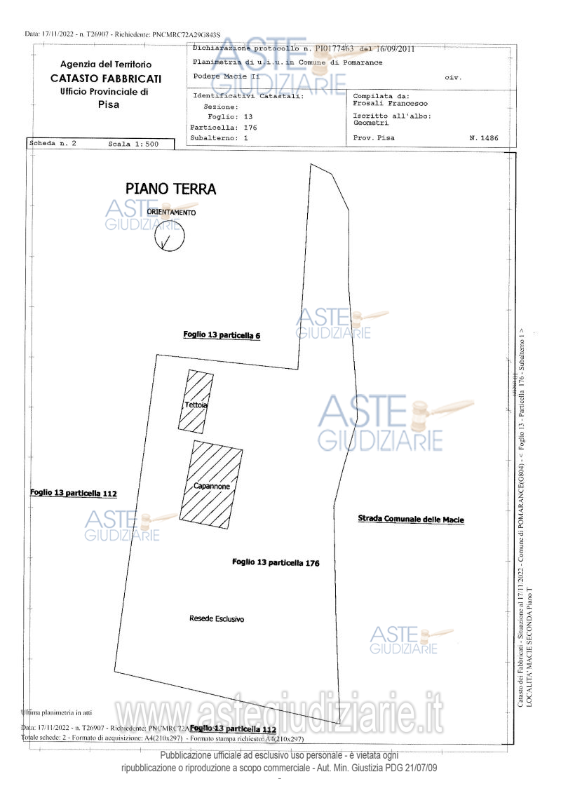 Vendita all'asta Senza incanto, con gara telematica sincrona mista - LOTTO 3: In Comune di POMARANCE (PI), località Le Macie, Via Volterrana, piena proprietà dell’intero delle seguenti consistenze immobiliari: Bene A) Al numero civico 227, porzioni immobiliari rurali facenti parte di un più ampio fabbricato; Bene B) Capannone agricolo; Bene C) Appezzamento di terreno agricolo. Prezzo base € 213.000,00 (offerta minima € 159.750,00). Data vendita 10/04/2026 ore 15:00. Giudice Laura Pastacaldi. Professionista delegato alla vendita Not. Anna Gaudiano. Custode Giudiziario Dott. Cosimo Erriquez - Email "prenotazionipisa@astagiudiziaria.com". Rif. Tribunale di Pisa - Esecuzione immobiliare post legge 80 n. 34/2017