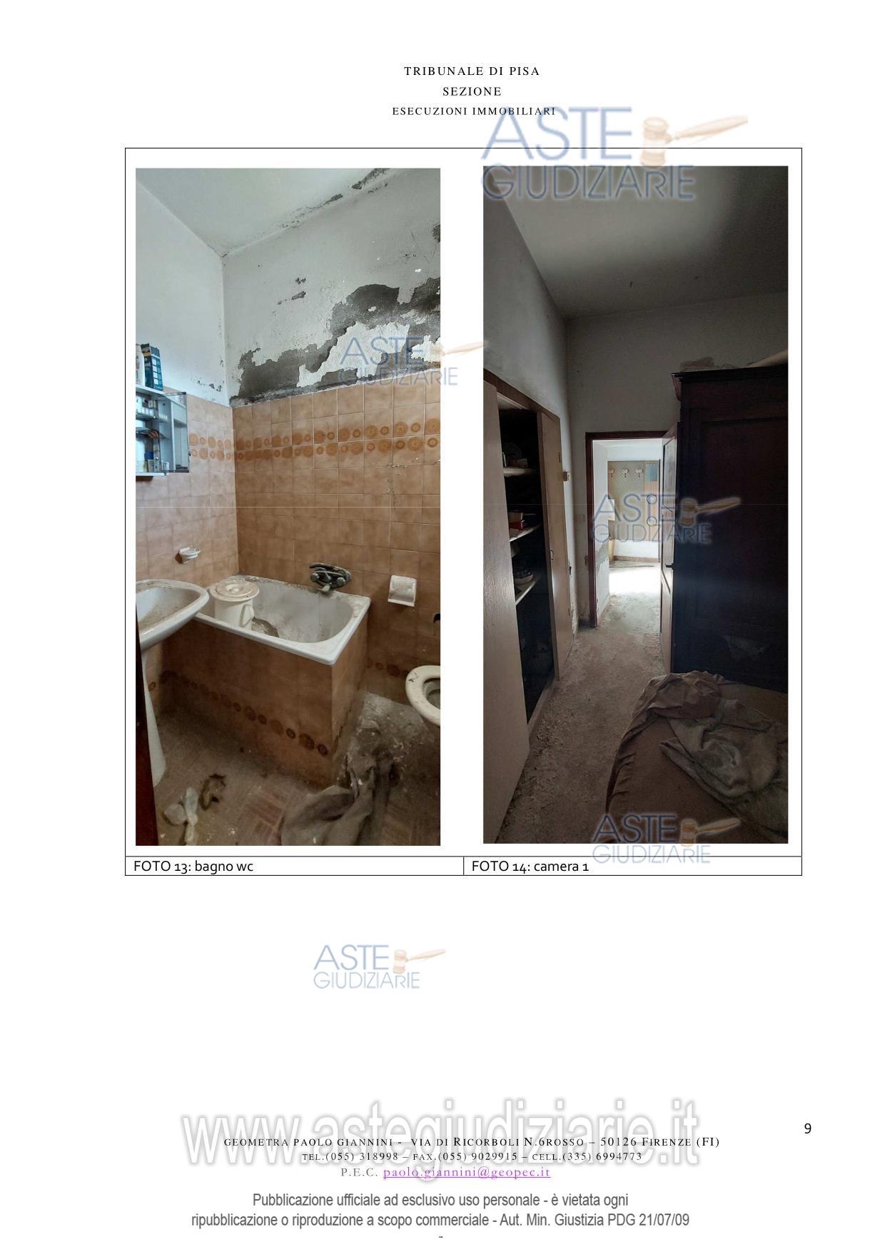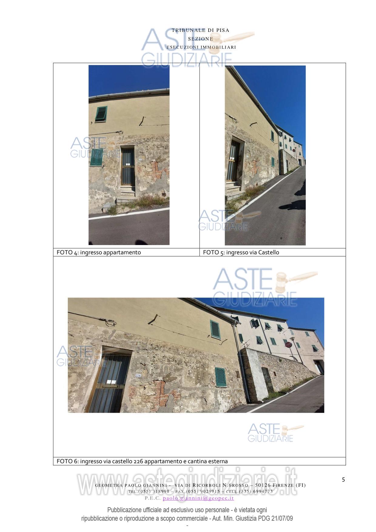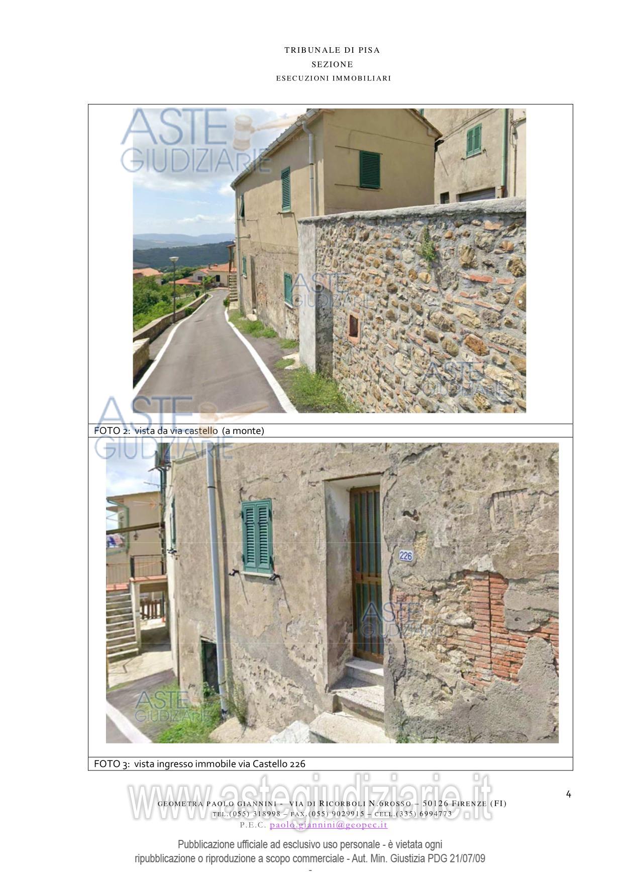 Vendita all'asta Senza incanto, con gara telematica asincrona - LOTTO UNICO: Appartamento ubicato a Pomarance (PI) - Via di Castello n. 226. Prezzo base € 28.303,00 (offerta minima € 21.227,00). Data inizio operazioni di vendita: 13/05/2026 ore 16:30. Giudice Pastacaldi. Professionista delegato alla vendita Avv. Livio Baglini. Custode Giudiziario Dott. Cosimo Erriquez - Email "prenotazionipisa@astagiudiziaria.com"; Tel. 050554790. Rif. Tribunale di Pisa - Espropriazione immobiliare (cartabia) n. 118/2025