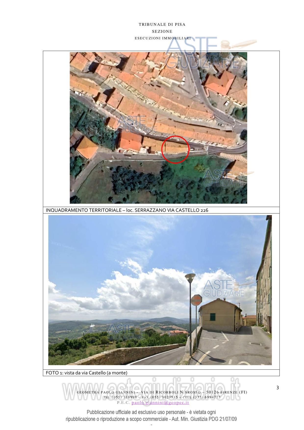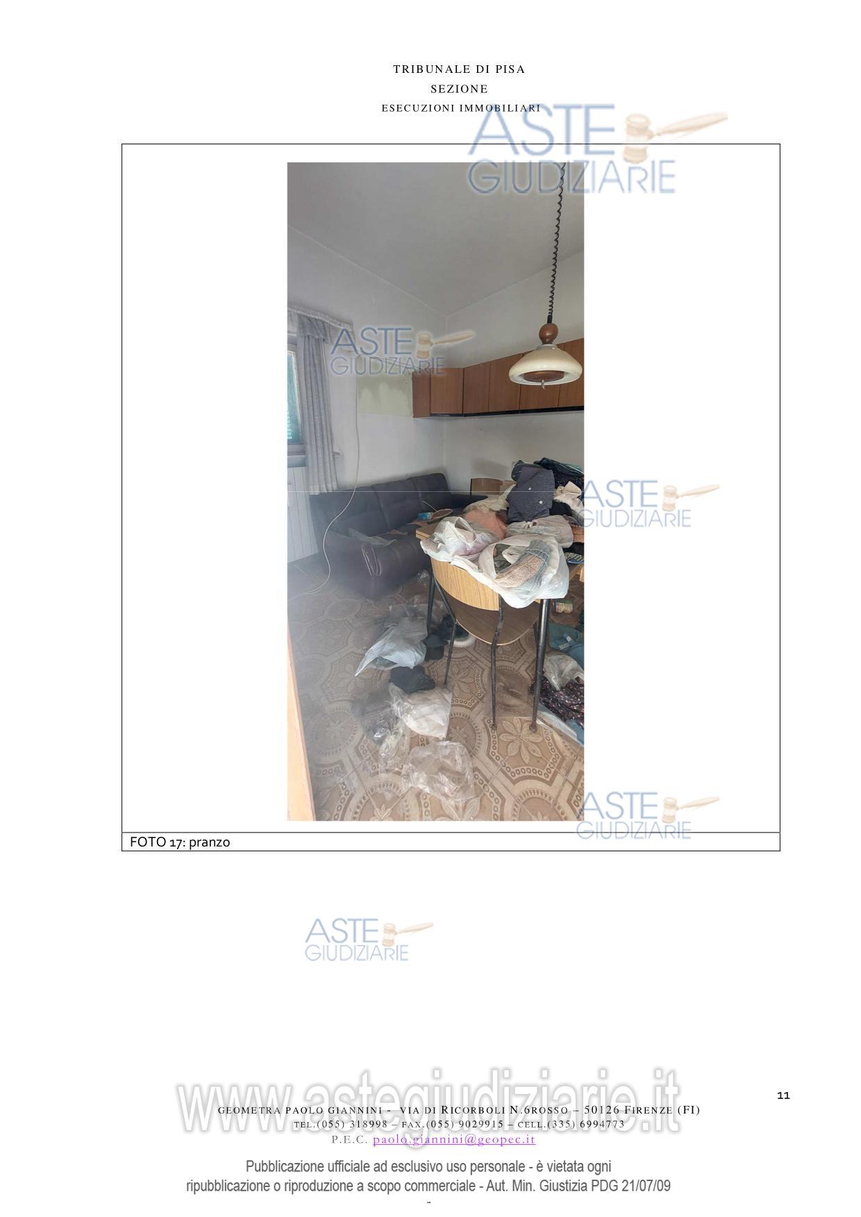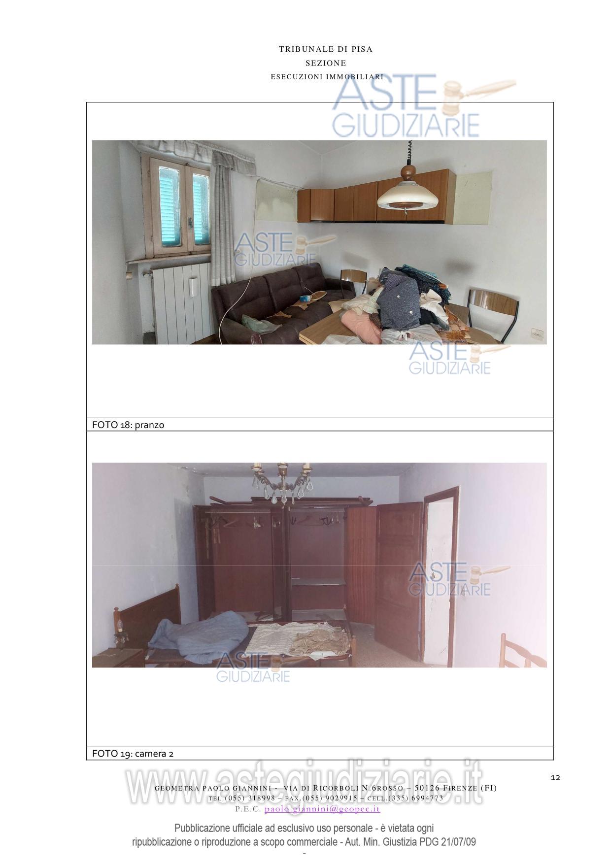 Vendita all'asta Senza incanto, con gara telematica asincrona - LOTTO UNICO: Appartamento ubicato a Pomarance (PI) - Via di Castello n. 226. Prezzo base € 28.303,00 (offerta minima € 21.227,00). Data inizio operazioni di vendita: 13/05/2026 ore 16:30. Giudice Pastacaldi. Professionista delegato alla vendita Avv. Livio Baglini. Custode Giudiziario Dott. Cosimo Erriquez - Email "prenotazionipisa@astagiudiziaria.com"; Tel. 050554790. Rif. Tribunale di Pisa - Espropriazione immobiliare (cartabia) n. 118/2025