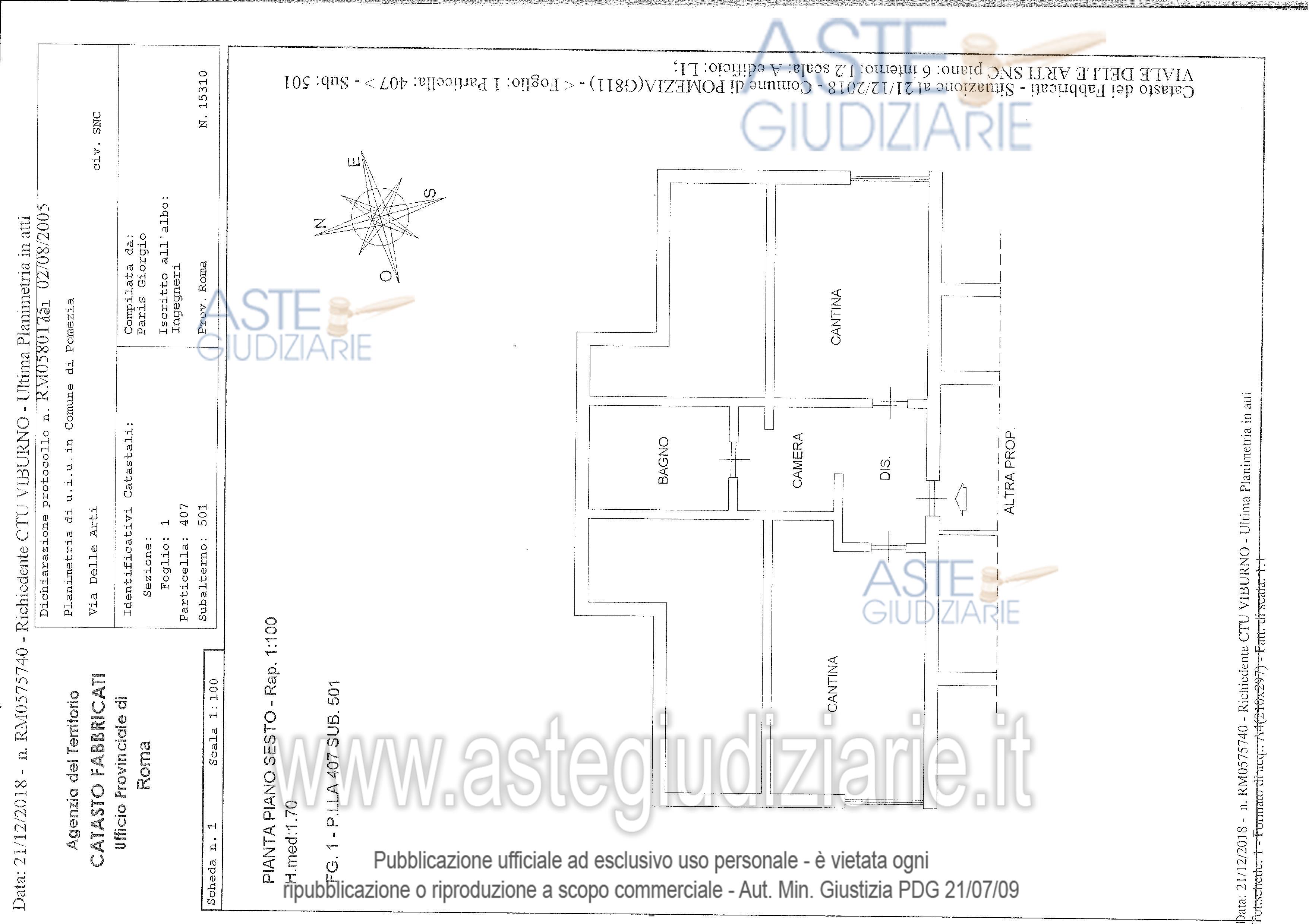 Vendita all'asta Senza incanto - LOTTO 2: Lotto 2. APPARTAMENTO AL PIANO SESTO. Prezzo base € 17.085,94 (offerta minima € 12.814,45). Data vendita 16/12/2025 ore 10:00. Professionista delegato alla vendita Avv. Carmela Gallo - Email "avv.carmelagallo@gmail.com"; Tel. 069639058. Custode Giudiziario Avv. Giovanni Luigi Guazzotti - Email "info@studiolegaleguazzotti.com"; Tel. 0637500356. Rif. Tribunale di Velletri - Esecuzione immobiliare post legge 80 n. 378/2018