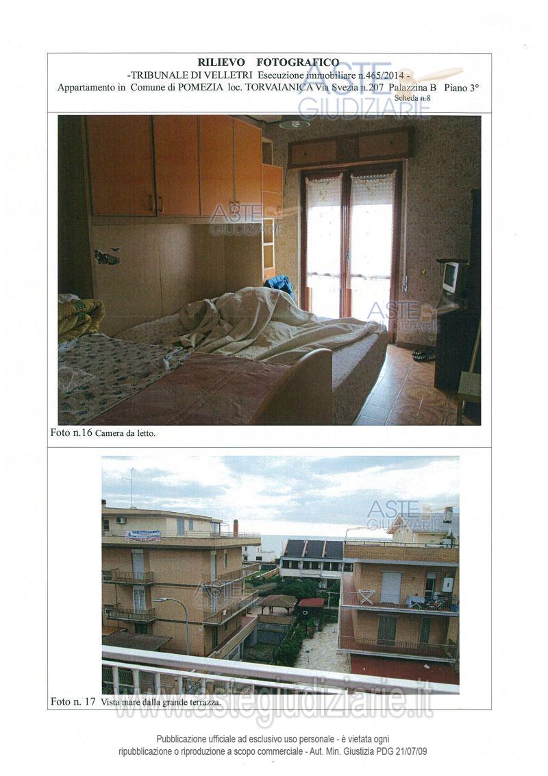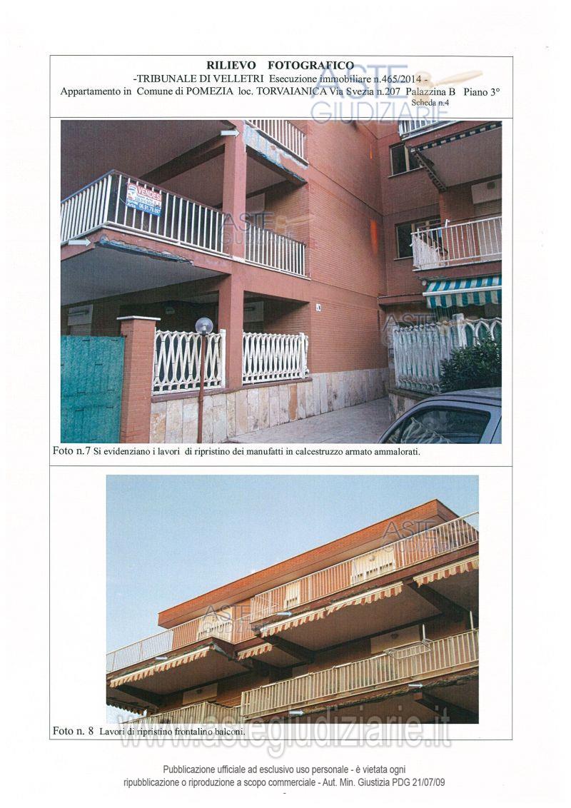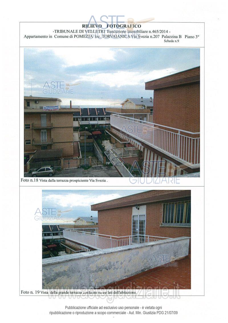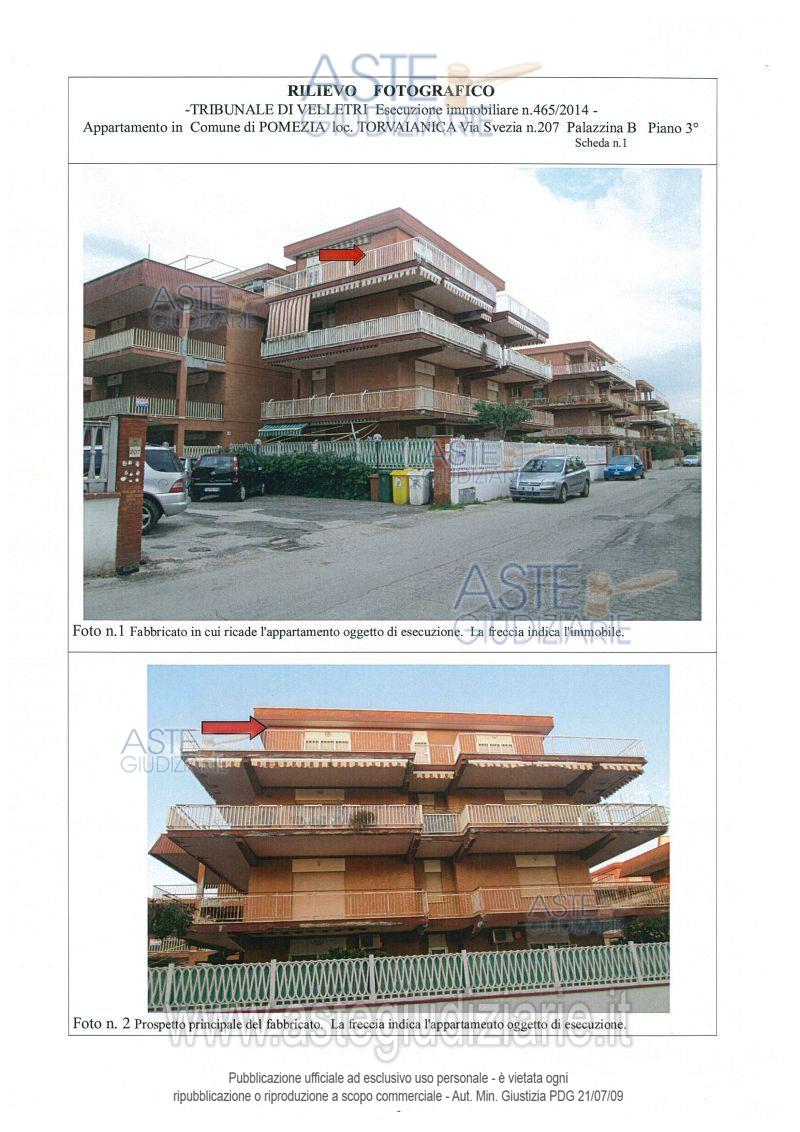 Vendita all'asta Senza incanto - LOTTO UNICO: Appartamento al terzo piano attico distinto con il numero 10 della Palazzina contraddistinta della lettera "B" in località Torvaianica del Comune di Pomezia in Via Svezia n.207/B. Gode di una ampia terrazza con vista mare. Prezzo base € 184.275,00 (offerta minima € 138.206,25). Data vendita 16/12/2025 ore 11:00. Professionista delegato alla vendita Avv. Emanuele Scotti - Email "scotti.esecuzioni@gmail.com"; Tel. 0694369818. Custode Giudiziario Ivg Di Roma Srl Istituto Vendite Giudiziarie - Email "pvp@visiteivgroma.it"; Tel. 0689569801. Rif. Tribunale di Velletri - Esecuzione immobiliare post legge 80 n. 465/2014