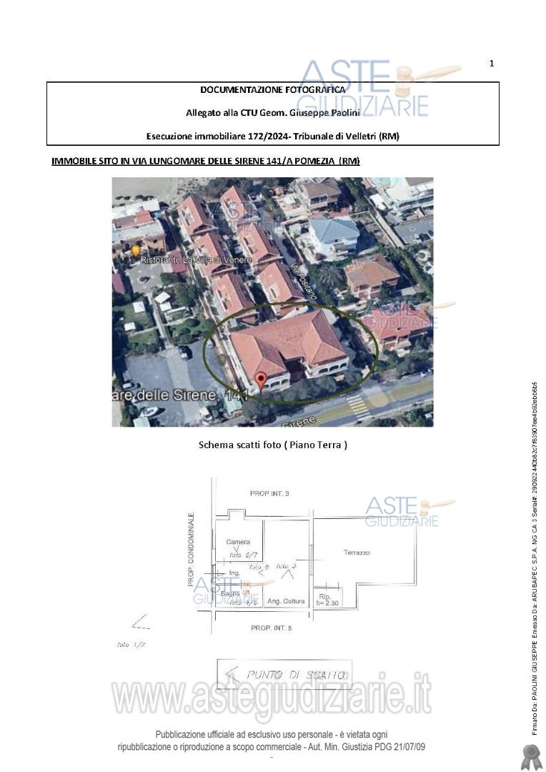 Vendita all'asta Senza incanto, con gara telematica asincrona - LOTTO UNICO: Piena proprietà (1/1) di Appartamento ubicato a Pomezia (RM) - via Lungomare delle Sirene n.141/a, interno 4, piano T. Identificato al catasto Fabbricati - Fg. 25, Part. 728, Sub. 511,Categoria A2, Graffato 1937. Destinazione urbanistica: L'immobile fa parte di un complessoimmobiliare ove si trovano diverse unità sia abitative nonché box. Prezzo base € 50.300,00 (offerta minima € 37.725,00). Data inizio operazioni di vendita: 28/05/2026 ore 10:30. Professionista delegato alla vendita Avv. Elisa Gnani - Email "avv.elisagnani@tiscali.it". Custode Giudiziario Avv. Elisa Gnani - Email "avv.elisagnani@tiscali.it". Rif. Tribunale di Velletri - Espropriazione immobiliare (cartabia) n. 172/2024