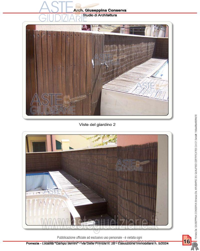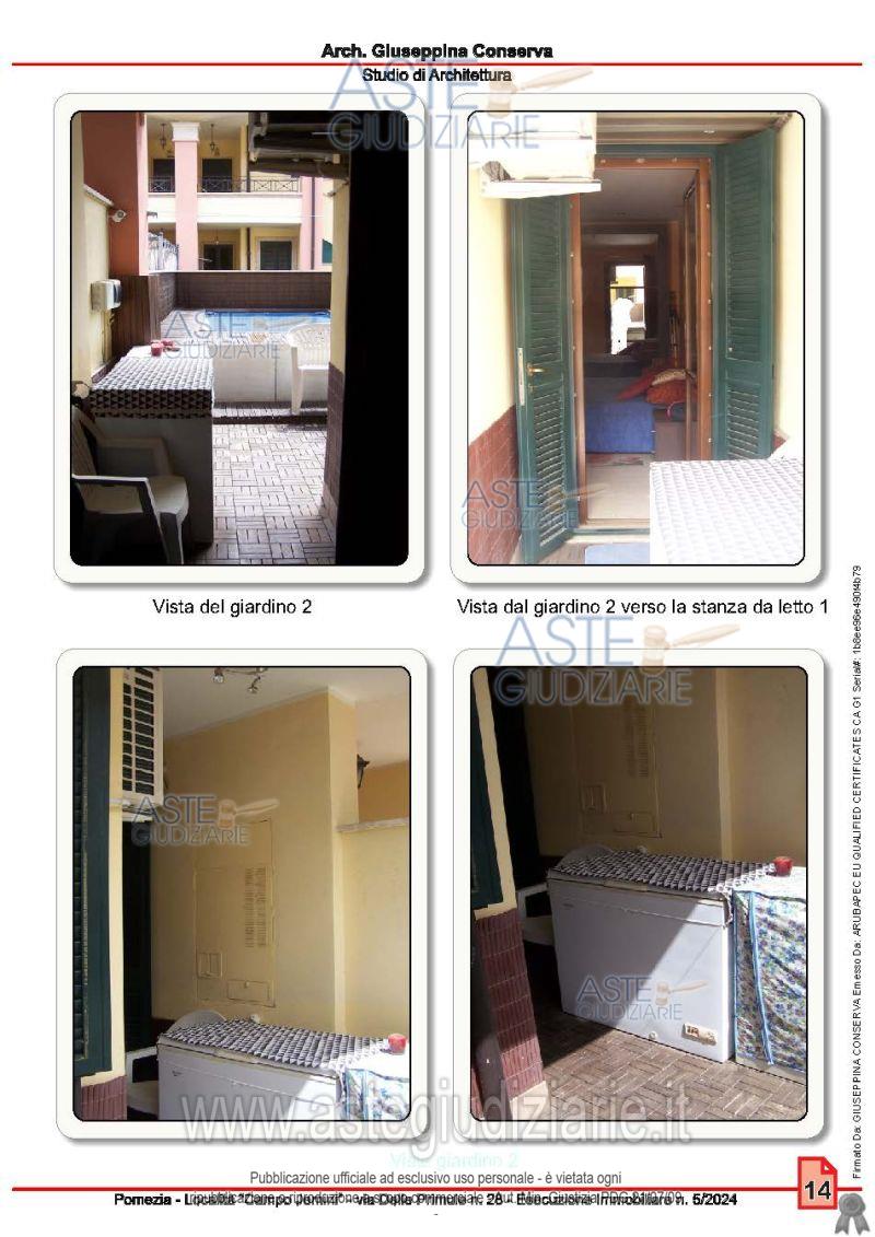 Vendita all'asta Senza incanto, con gara telematica asincrona - LOTTO UNICO: Appartamento ubicato in Pomezia (RM) Via Delle Primule n. 28, edificio a, int. 1 piano terra del villino A: così composto: soggiorno-pranzo-cucina, 2 camere da letto ed 1 bagno per una superficie catastale di 64 mq. Annessi all’appartamento vi sono un portico con superficie lorda di 13,21 mq e netta 13,04 mq, 2 giardini di cui uno con superficie lorda di 79,44 mq e netta di 74,14 mq, l’altro con superficie lorda di 23,71 mq e netta di 21,82 mq ed un sottoscala con superficie lorda di 2,47 mq . Prezzo base € 108.675,00 (offerta minima € 81.506,25). Data inizio operazioni di vendita: 20/01/2026 ore 11:00. Professionista delegato alla vendita Avv. Salvatore Di Marco - Email "studiolegale.dimarco@libero.it"; Tel. 0689014502. Custode Giudiziario Avv. Salvatore Di Marco - Email "studiolegale.dimarco@libero.it"; Tel. 0689014502. Rif. Tribunale di Velletri - Espropriazione immobiliare (cartabia) n. 5/2024